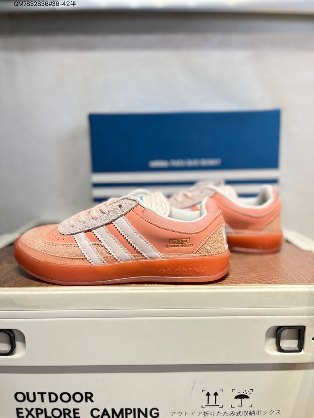 Puerto Rican rapper Bad Bunny has continued his collaboration with adidas in 2019, and the duo is already designing a slew of styles. This year, they kicked off with their signature Campus in a "Dark Brown" hue, and they followed up with their successful Response Cl, this time in "Wonderwhite." Now, images have emerged, offering our best look yet at the duo's latest venture. This probably isn't the first you've heard of Bad Bunny's adidas Gazelle Indoor, as the rapper actually teased the next Colab on the cover of Interview Magazine back in February. The colorway chosen is subtle, featuring a White leather base with Black accents, while Grey suede is featured on the toe box and heel. The highlight of this model is the warped toe box, which gives off an asymmetrical feel. Item Number: Js5052 Qm7832836 #36-42 Half