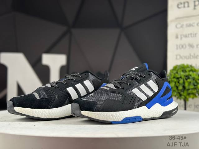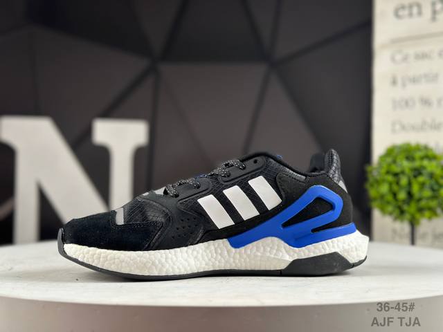 original last data development paper mesh upper with synthetic suede finish midsole embedded with full-length Boost popcorn cushioning particle material, cotton foot feel experience, fully armed with technology, street sports popular decoding, new Adidas Adidas Trefoil Originals Day Jogger Boost version jogger series high-elastic retro casual sports running shoes