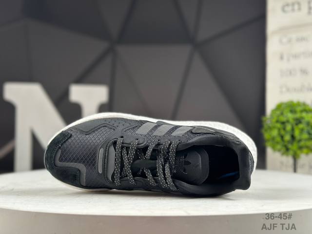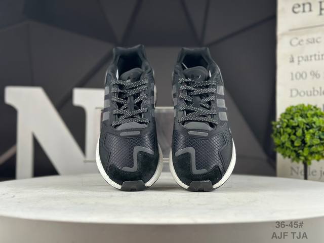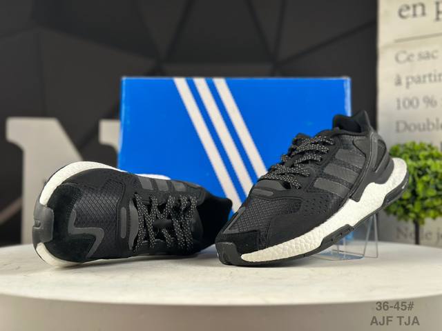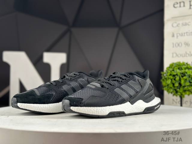 original last data development paper mesh upper with synthetic suede midsole embedded with full-length Boost popcorn cushioning particle material, cotton foot feel experience, fully armed with technology, street sports popular decoding, new Adidas Originals Day Jogger Boost version jogger series high-elastic retro casual sports running shoes