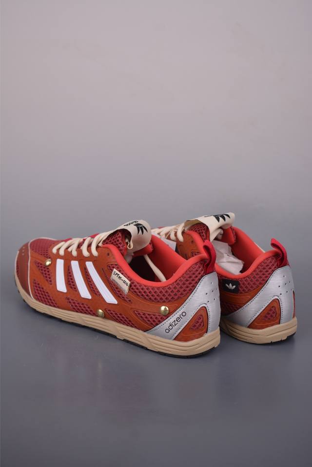 Song For The Mute X Adidas Originals Adizero pr Sftm-006 Comfortable, Versatile, and Breathable Running Shoes. This shoe blends racing shoe aesthetics with fashion. From the asymmetrical combination of mesh and suede leather to the details of metal rivets and distressed stitching , everything adds a refined texture to this professional running shoe. Available in three colorways: Oxidized White, Black, and Sporty Red. The midsole features a vintage, distressed, yellowed finish for a natural look. Compared to the aggressive styling of regular racing shoes, the retro warm tones are more suitable for everyday wear. Official product code: Hp35231229. Sizes: 36, 36.5, 37.5, 38, 38.5, 39, 40, 40.5, 41, 42, 42.5, 43, 44, 45.