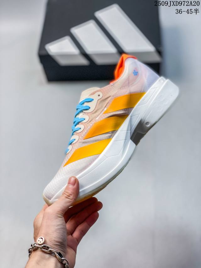 The Adidas Adizero Evo Sl is a comfortable, sporty, non-slip, and wear-resistant low-top running shoe. It features a lightweight mesh synthetic upper with a textile lining for tough, breathable, and comfortable fit. The midsole features a full-length, double-layer
