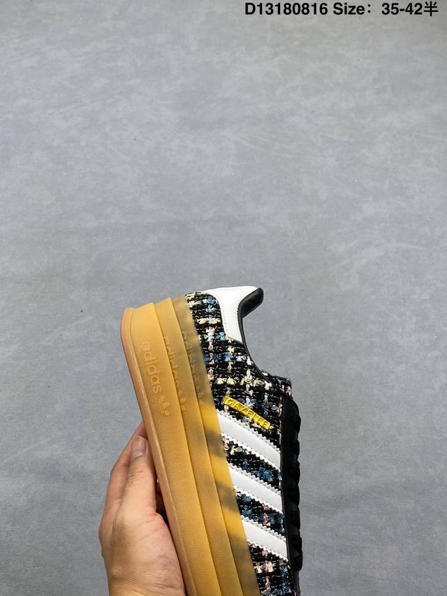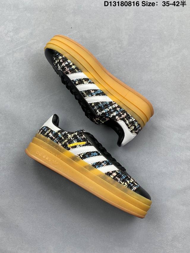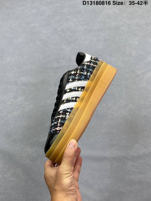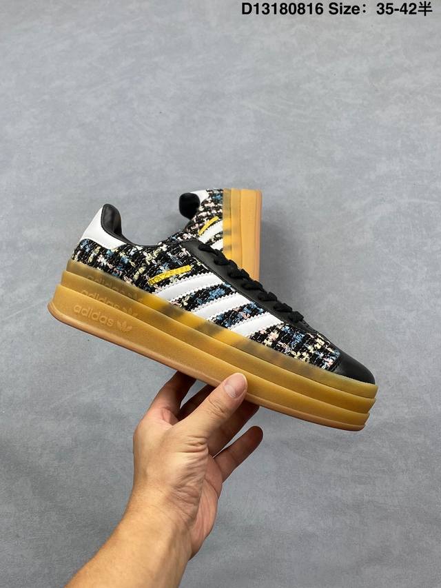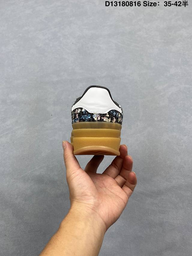 The Adidas Gazelle Bold W platform shoes feature a suede and fiber leather upper and a thickened rubber outsole. These three-layer platform shoes are a must-have for women! These Adidas Originals Gazelle Bold W platform shoes are retro, versatile, thick-soled, and high-heeled low-top casual sneakers. Jp7390