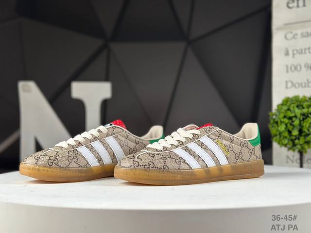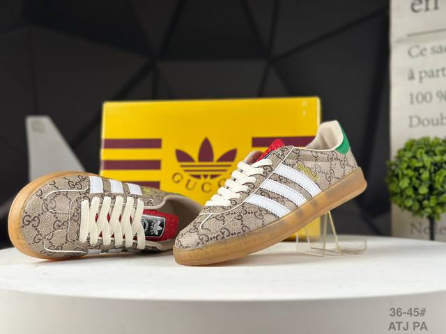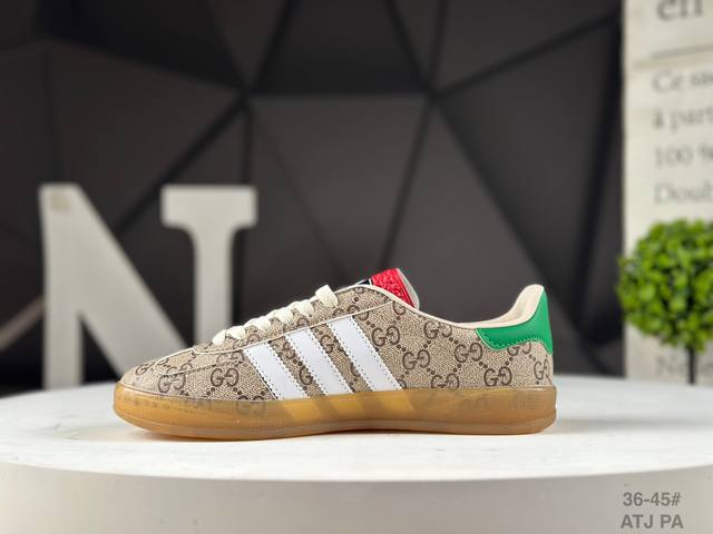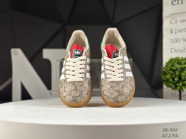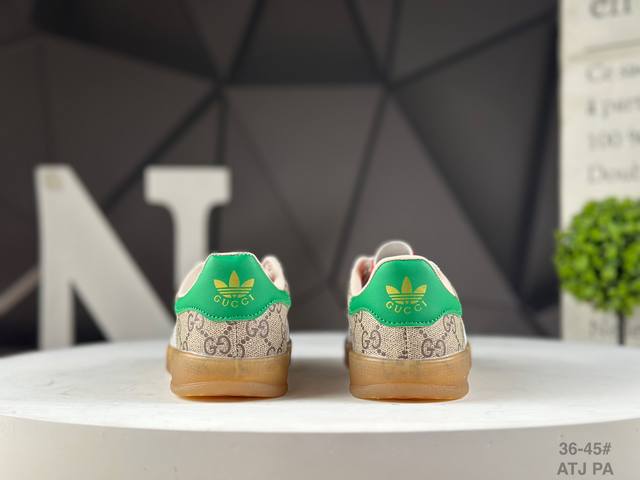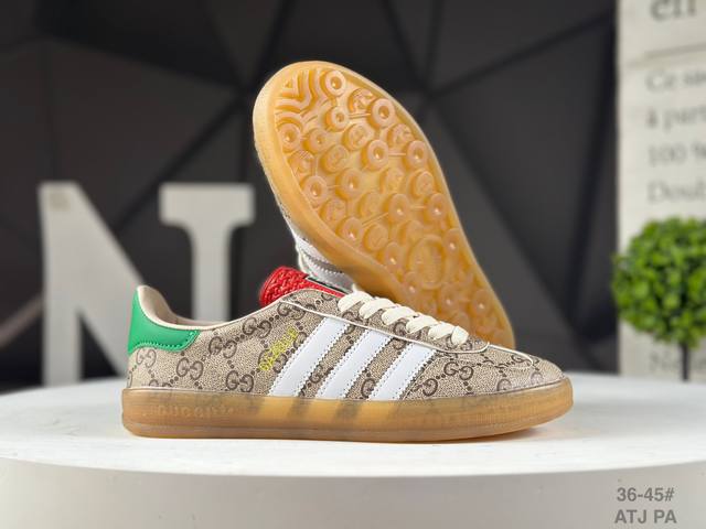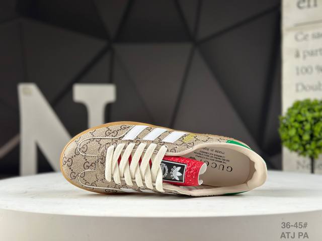 The Adidas X Gucci collaboration features the Trefoil logo and iconic three-stripe design elements, combining them with the unique Gucci aesthetic. Both partners chose the Adidas Originals classic Gazalle silhouette as their model. The rubber sole features the Trefoil and Gucci logo, while the upper is covered in textures like python, suede, and suede, seamlessly blending luxury, retro, and sporty styles. The three-stripe Dexterity sneakers are expected to continue to be popular this year. Item No.: 715217 Faar3 9751 Atj