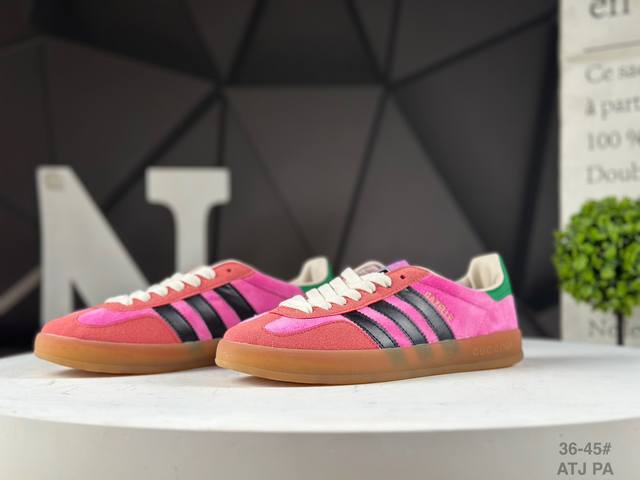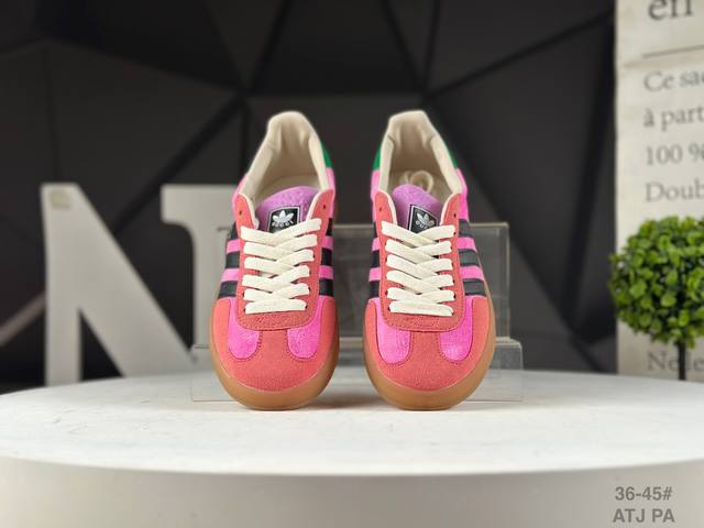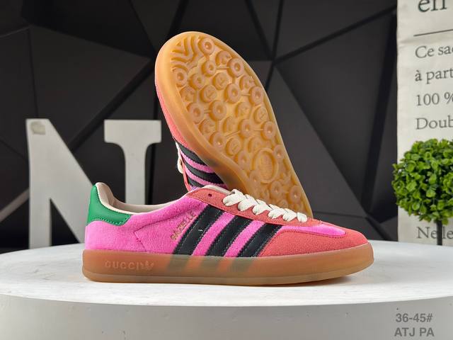 The Adidas X Gucci collaboration features the Trefoil logo and iconic three-stripe design elements, combining them with the unique Gucci aesthetic. Both partners chose the Adidas Originals classic Gazalle silhouette as their model. The rubber sole features the Trefoil and Gucci logo, while the upper is covered in textures like python, suede, and suede, seamlessly blending luxury, retro, and sporty styles. The three-stripe Dexterity sneakers are expected to continue to be popular this year. Item No.: 707864 9Stu0 5960 Atj