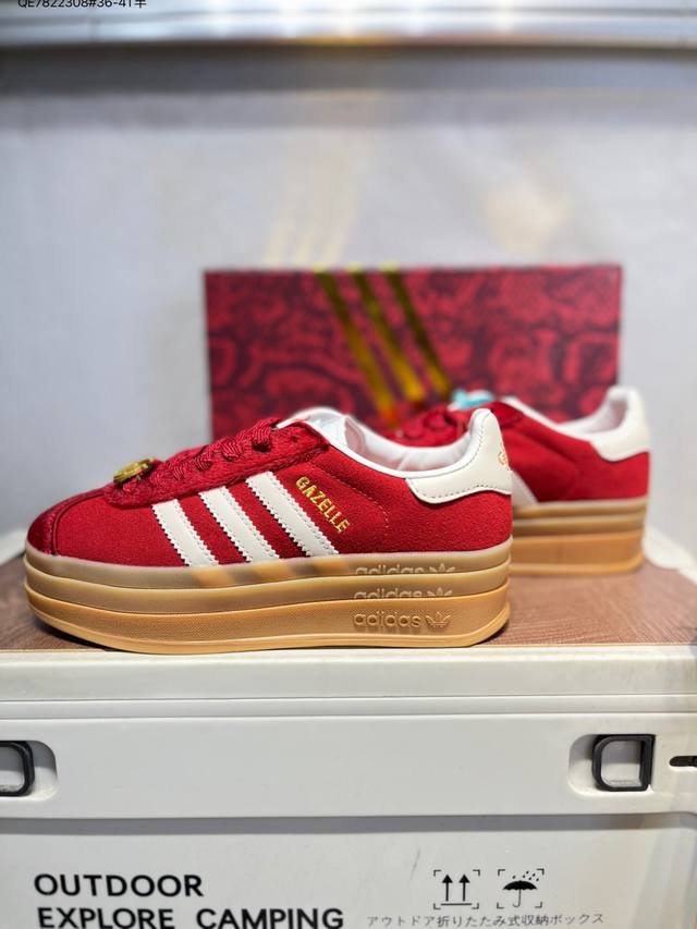 Year of the Horse Limited Edition Adidas German Training Series Men's and Women's Shoes, Authentic Label, Half Size System, Upgraded Original Last and Paper Version Development, Featuring a Suede and Snake Fiber Leather Upper, Thickened Rubber Outsole, Adidas Originals Gazelle Bold Year of the Snake Platform Series Retro Versatile Thick-Soled Low-Top Casual Sports Sneakers Kj4293 Qe7822308#36-41 Half Size