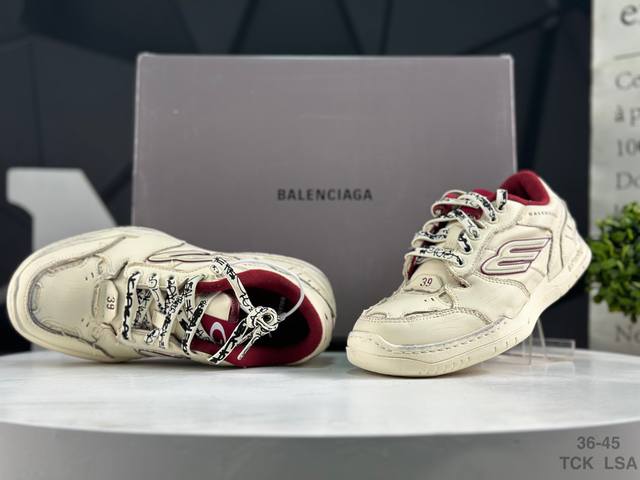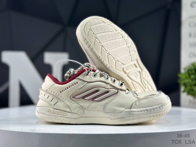 Balenciaga Hamptons Worn Out 18th Generation Handcrafted Distressed Leather Round Toe Lace-up Low-Top Casual Shoes (