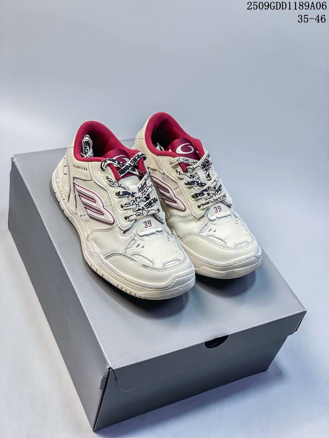 Balenciaga Hamptons Worn-Out leather logo embossed distressed effect round toe lace-up low-top lifestyle casual shoes 9 60Aseyt 35-46