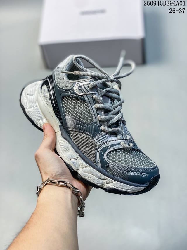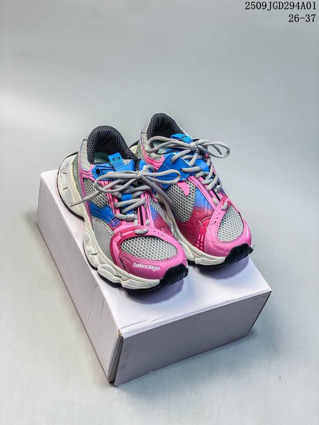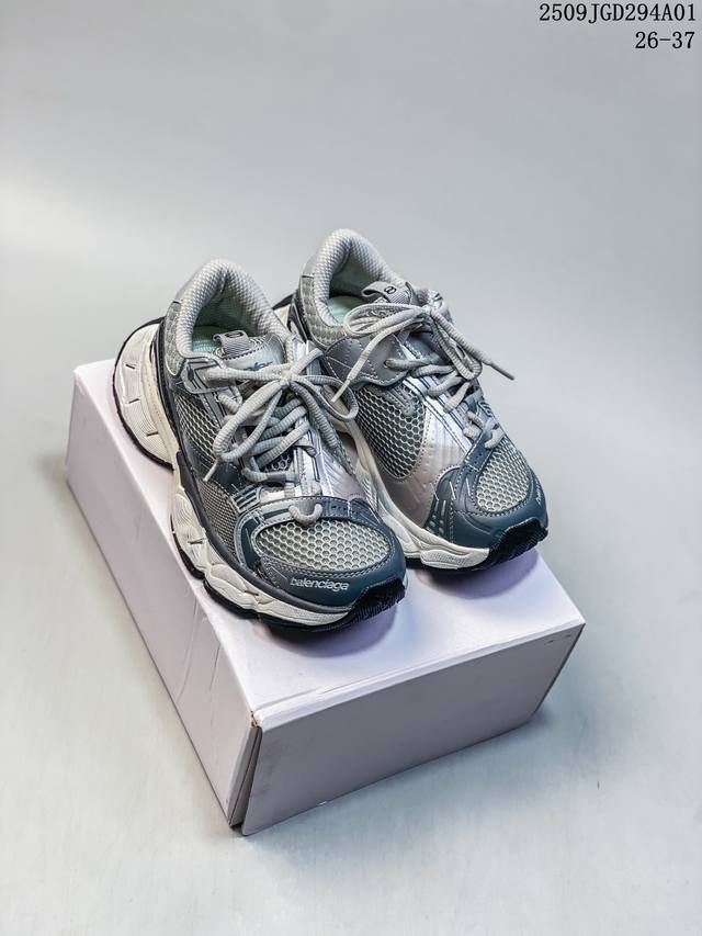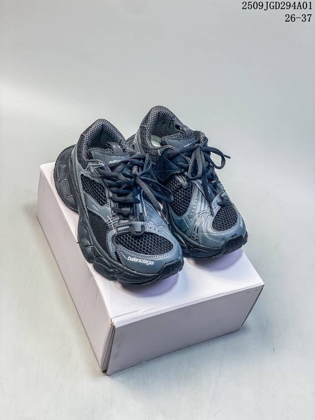 Balenciaga IX 3Xl double laces, the hottest online celebrity children's casual retro sneakers, Balenciaga European runway model, thick-soled dad shoes with inner Velcro, versatile running shoes for boys and girls, street-style children's shoes official website, trendy brand, hollow Korean style, latest non-slip height-enhancing sole, breathable, casual classic, all-season parent-child trendy shoes, lightweight children's shoes