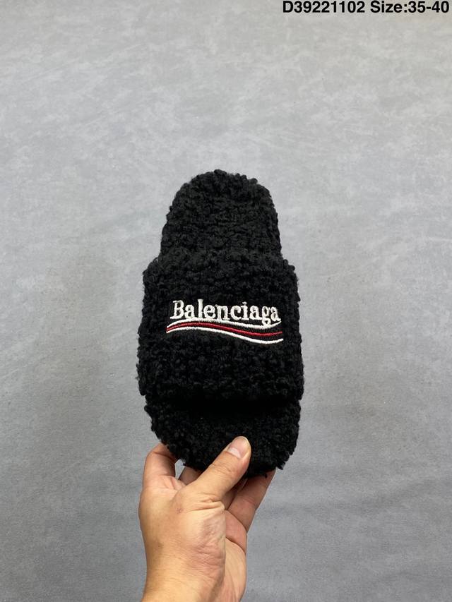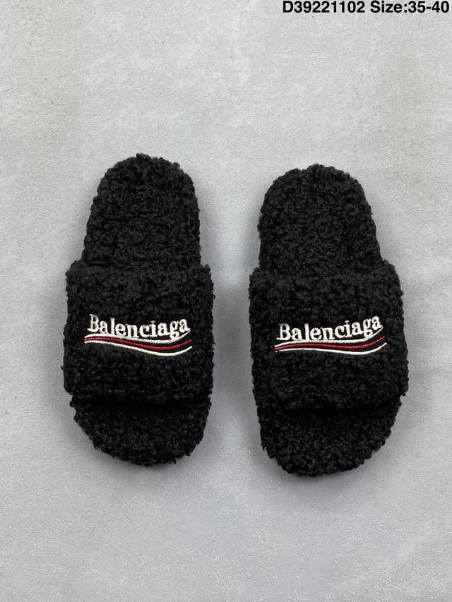 Balenciaga Open-Toe Cotton Slippers - Autumn/Winter's New Darling! These fluffy slippers are incredibly cute and stylish, elongating your legs perfectly, and surprisingly warm! Highly recommended, you'll truly love them! Sizes: 35 36 37 38 39 40 (DDD D39221102)