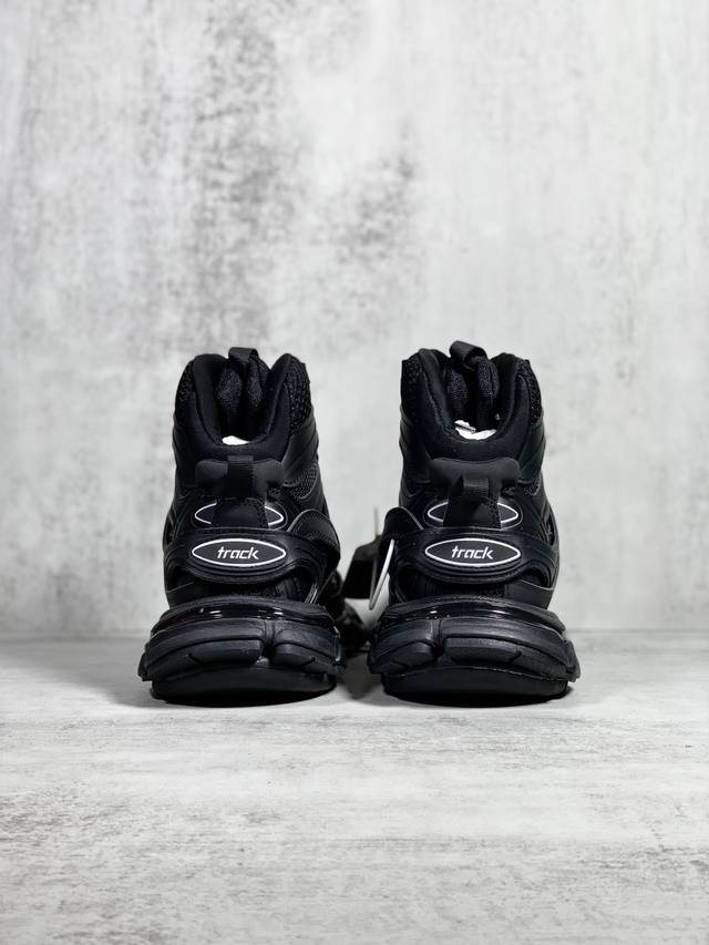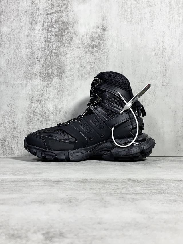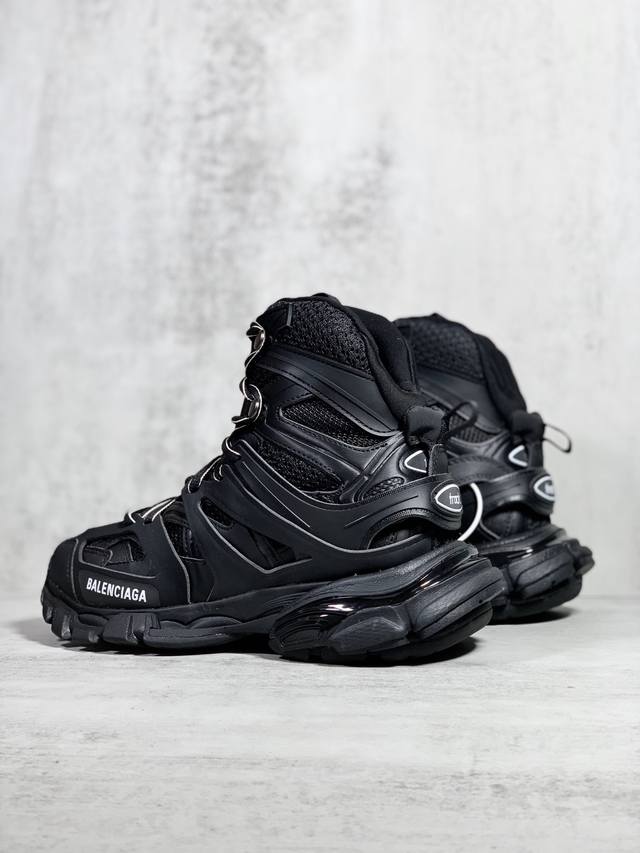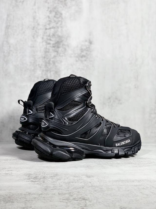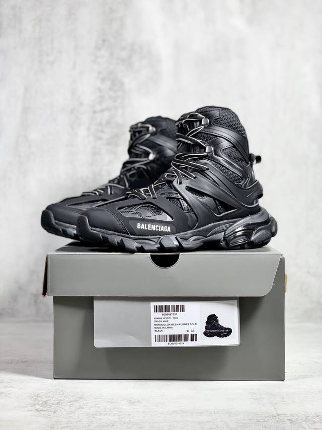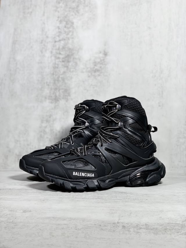 OK Version Balenciaga Track Hike Round Toe Lace-up High-Top Dad Shoes, Unisex, Black. Sizes: 35 36 37 38 39 40 41 42 43 44 45 46.