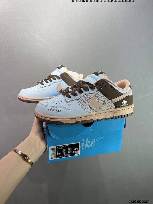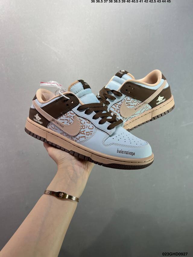 Corporate-grade Balenciaga x Nike Dunk Low in gray-brown and pink with a hook. This style breaks free from the constraints of traditional industrial assembly-line design. Embracing the ultra-creative Made By Ideas philosophy, the brand collaborates with numerous trendsetting designers and combines the latest trends to create exclusive pieces for fashion lovers that truly express their individuality. At the same time, the brand respects every young person's understanding and choice of fashion, advocating "letting each young person shape their own trends." Item No.: Dd1988-002. Sizes: 36, 36.5, 37.5, 38, 38.5, 39, 40, 40.5, 41, 42, 42.5, 43, 44, 44.5, 45. ID: 023Ghd0927.
