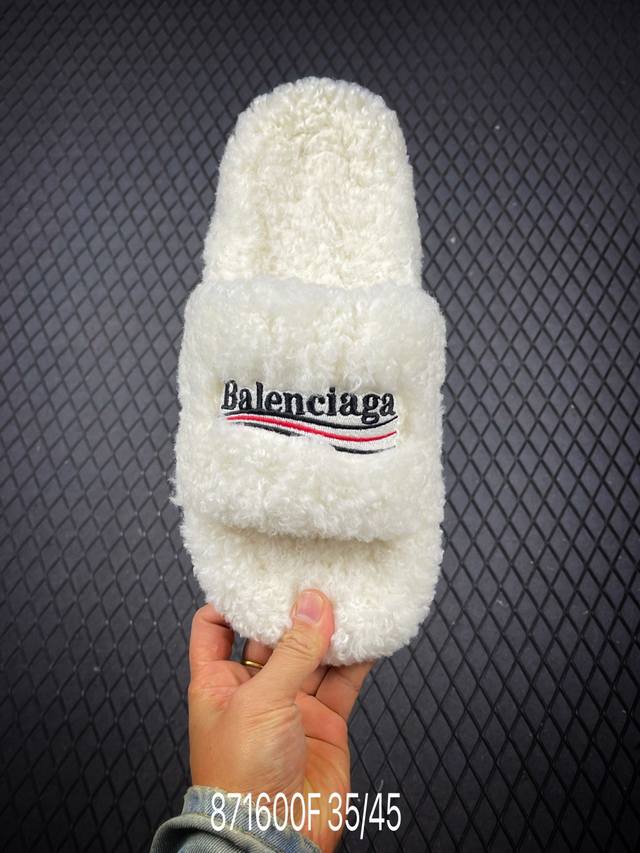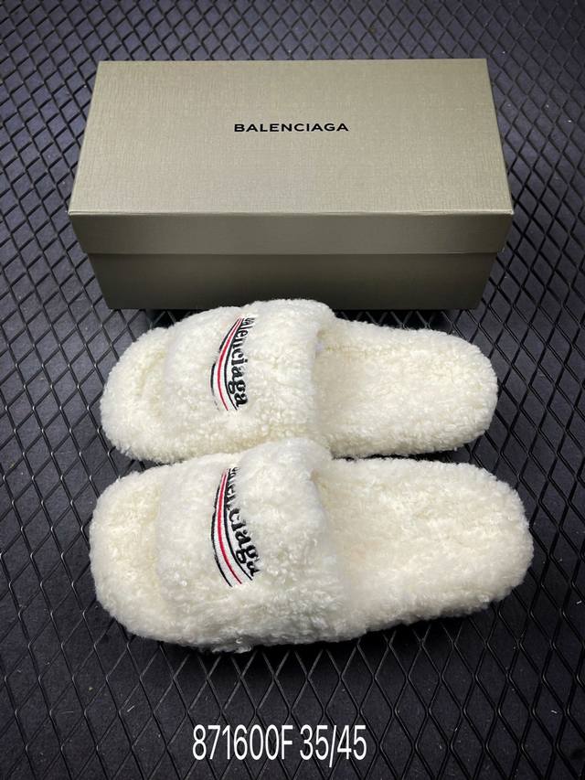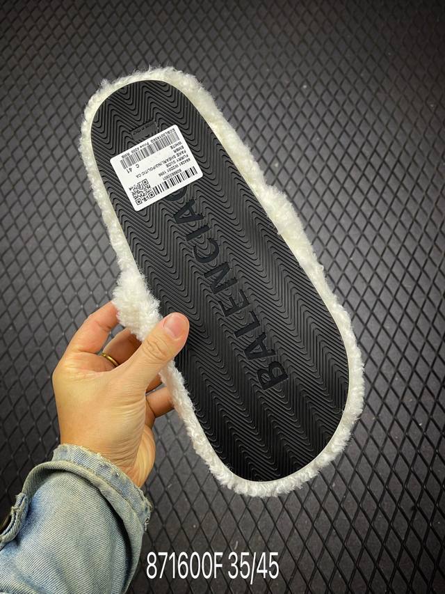 F Genuine Balenciaga Furry Slippers DDD Made entirely of authentic sheepskin, unlike any other version on the market. DDD Original purchase and development, 1:1 replica. The overall shoe design draws inspiration from the Balenciaga Track and Balenciaga Runner models, essentially removing the outer frame of the Track while inheriting the streamlined shape and beach Velcro closure of the Runner. The upper and insole are all made of authentic sheepskin, original mold, non-slip and wear-resistant sole, original packaging, and colorways updated synchronously with the official website. DDD Sizes: 35 36 37 38 39 40 41 42 43 44 45 Code: 871600F DDD