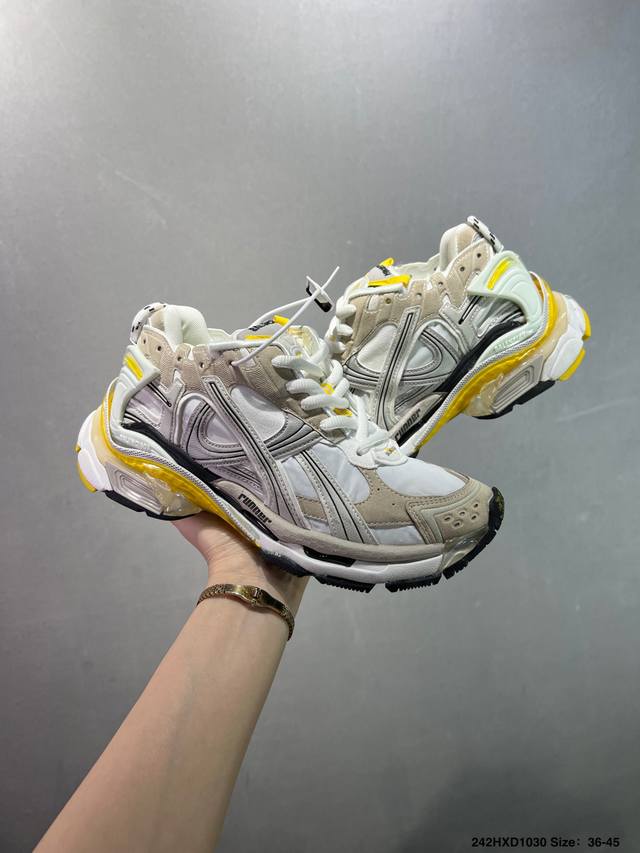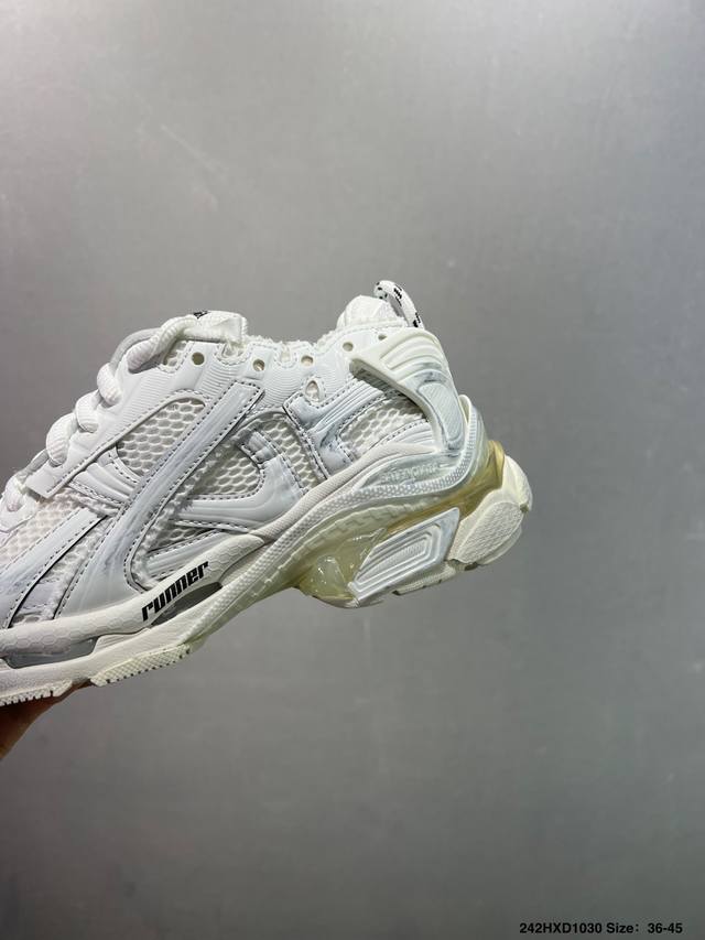 Factory Grade Balenciaga Runner Sneakers (excluding leather), made of mesh with a distressed finish. Size printed on the toe and back, runner logo on the lateral side, embroidered Balenciaga logo on the tongue and heel. Material: 70% polyurethane, 30% polyester. Product Code: 772767 W3Rmu 9934. Sizes: 35 36 37 38 39 40 41 42 43 44 45 46. ID: 242Hxd1030