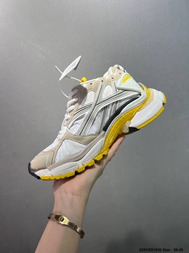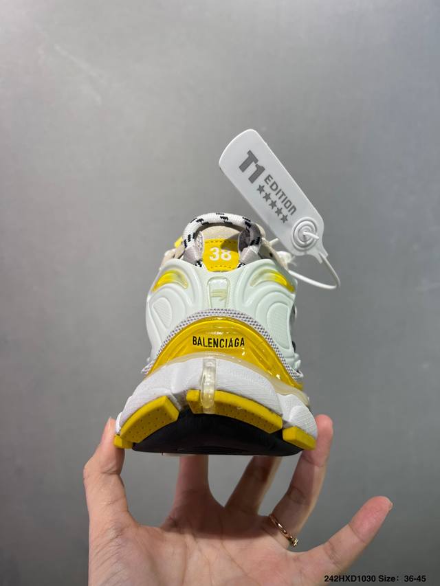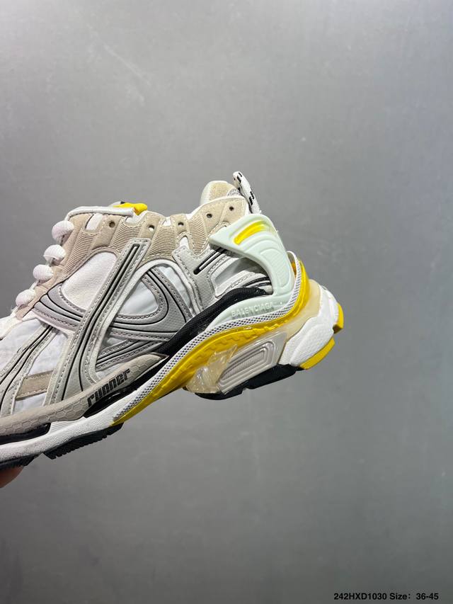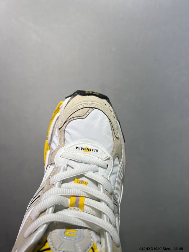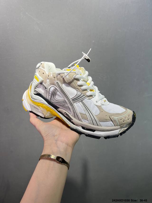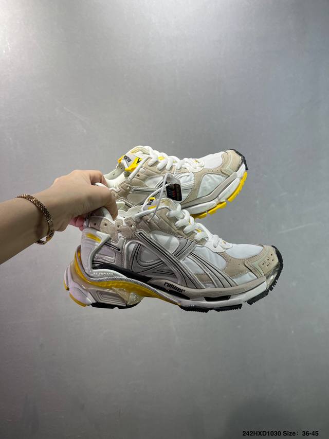 Factory Grade Balenciaga Runner Sneakers (excluding leather), made of mesh with a distressed finish. Size printed on the toe edge and back, with a runner's logo on the lateral side. Embroidered Balenciaga logo on the tongue and heel. Material: 70% polyurethane, 30% polyester. Product Code: 772767 W3Rmu 9934. Sizes: 35 36 37 38 39 40 41 42 43 44 45 46. ID: 242Hxd1030