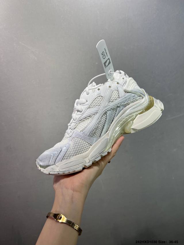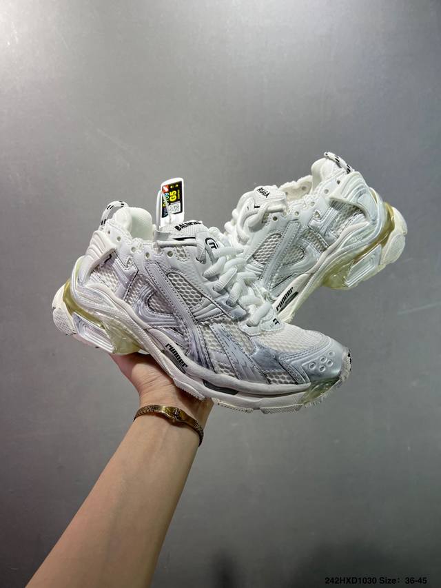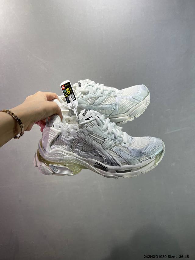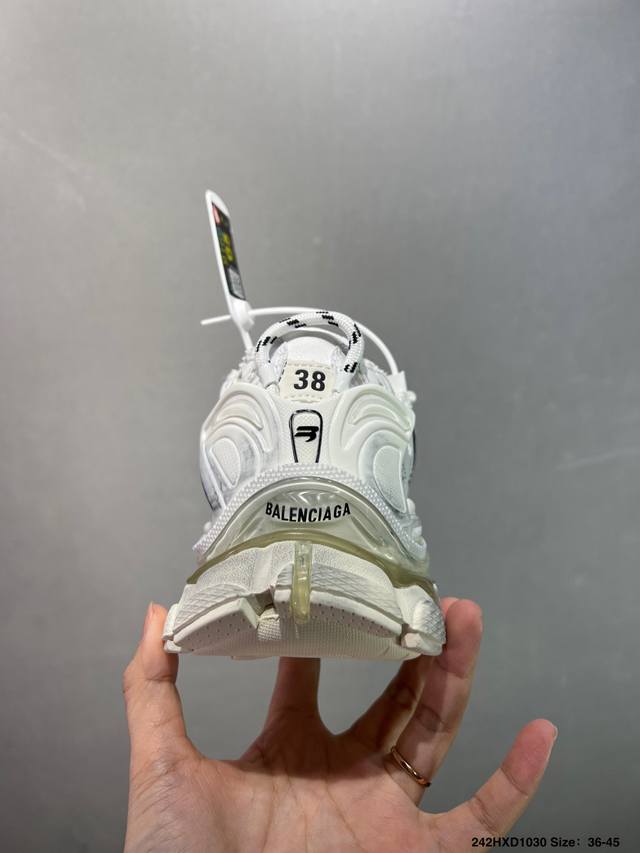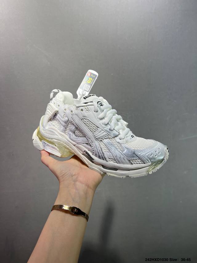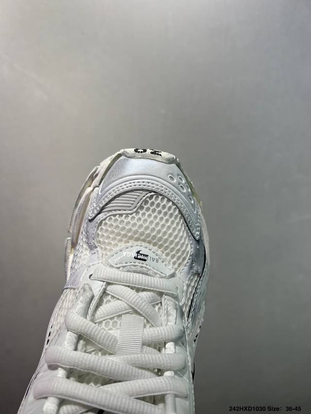 Factory Grade Balenciaga Runner Sneakers (Exclusive): Mesh material, distressed finish, size printed on the toe edge, embossed size on the back, runner logo on the lateral side, embroidered Balenciaga logo on the tongue, Balenciaga logo on the heel, 70% polyurethane, 30% polyester. Product Code: 772767 W3Rmu 9934. Sizes: 35 36 37 38 39 40 41 42 43 44 45 46. ID: 242Hxd1030.