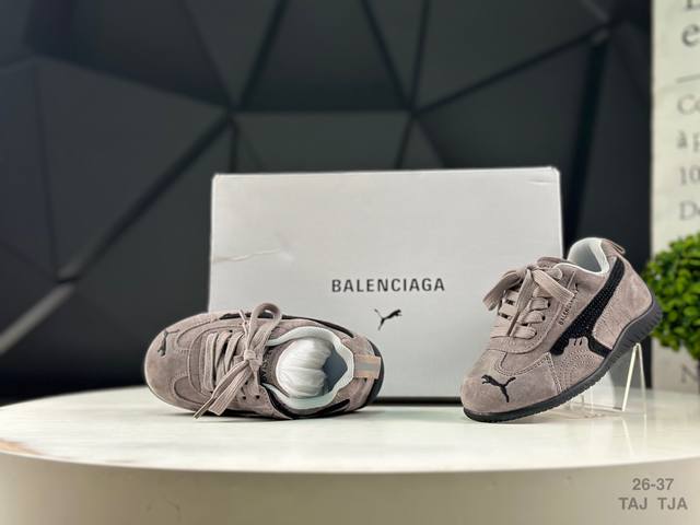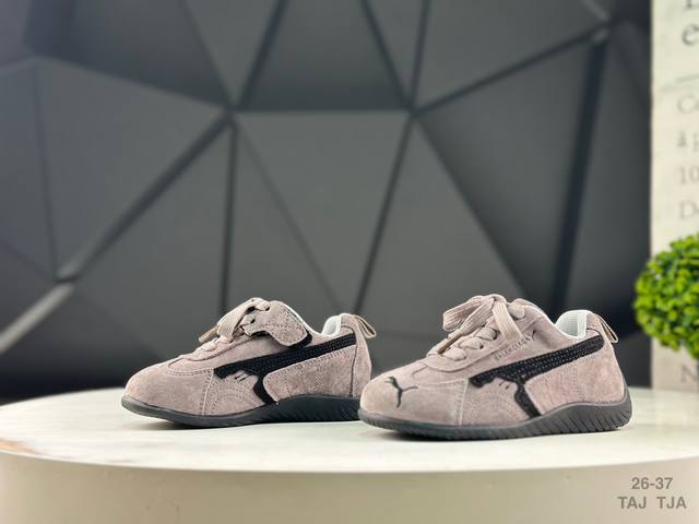 Balenciaga Puma collaboration hobo children's racing shoes with inner Velcro closure, boys and girls genuine leather colorblock streetwear children's shoes