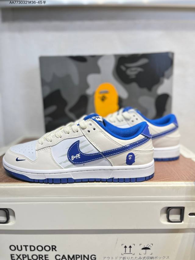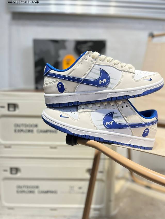 Ape Head x Nike SB Dunk Low, a highly recommended new colorway from a leading manufacturer. Made from genuine top-grain material and featuring an exclusive, distilled finish, this shoe offers a superior visual and foot-feeling experience. Highly authentic quality and cleanliness from a leading manufacturer. The leather is cleanly cut, free of burrs, and features impeccable details. Xf8698 Aa7730321#36-45 half-