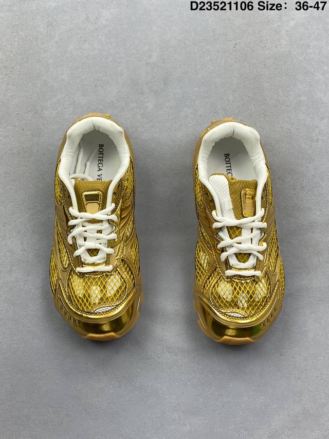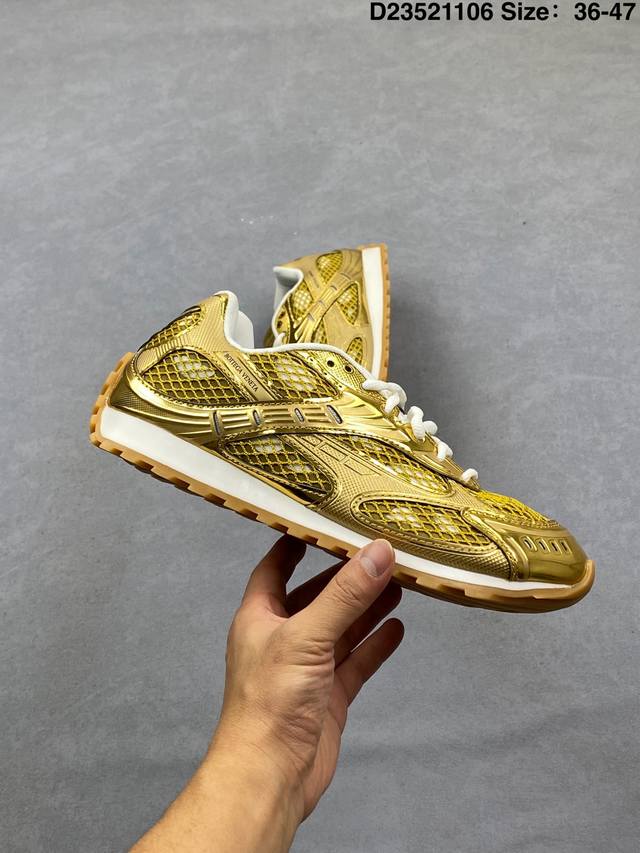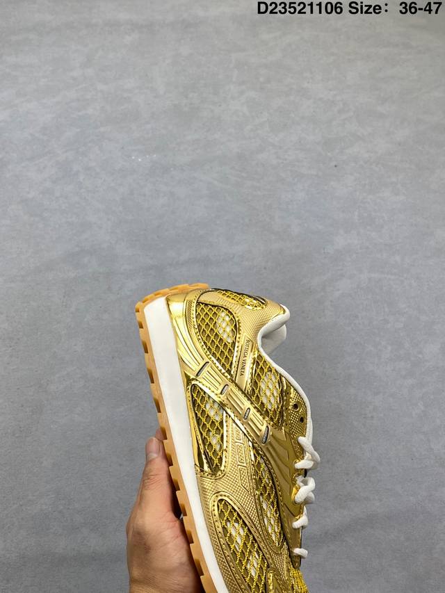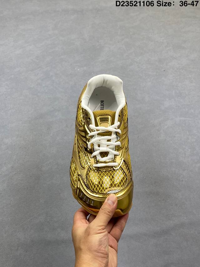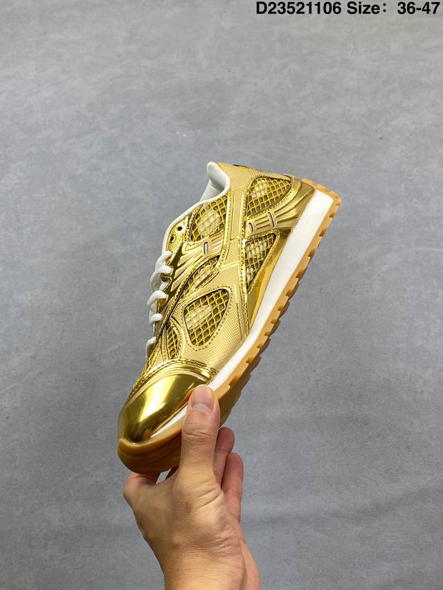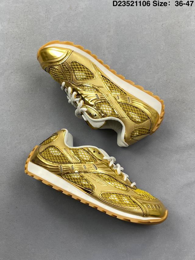 A tribute to the brand's famous Intrecciato pattern! Italian luxury brand Bottega Veneta releases the new Orbitb sneaker, a low-top pink track-inspired lace-up design that is breathable, comfortable, and casual. Inspired by the silhouette of 90s sneakers, the shoe features a mesh texture and a cross-over upper made of different materials, undoubtedly paying homage to the brand's famous Intrecciato pattern. The upper is made of premium brown leather, soft and naturally glossy, with an incredibly delicate feel. Attention to detail is evident in the woven details on the side, subtly integrating with the brand logo for understated luxury. The outsole is made of durable, slip-resistant rubber with a unique textured design that enhances grip and adds a touch of style. The soft, comfortable insole conforms to the foot shape, providing an excellent wearing experience. DDD Men's Product Code: 741357 V2X40 2244 DDD Women's Product Code: 755915 V2X40 2244 DDD D23521106 Size: 35