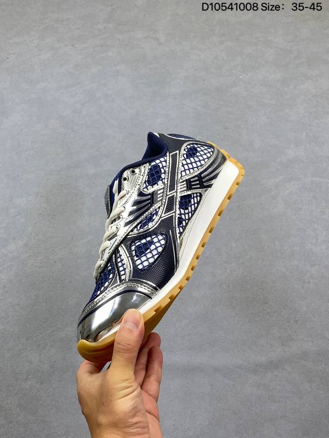 Bottega Veneta men's and women's shoes, made in Guangdong, upgraded with original last and paper pattern data development, using lightweight technical diamond mesh upper material, embedded breathable mesh with thickened PU cushioning latex insole, and external anti-deformation and wear-resistant TPU rubber outsole, paying homage to the brand's famous Intrecciato pattern! Italian luxury brand - Bottega Veneta - Orbit Lace-Up Low Sneakers, Track Series Lace-up Low-top Breathable Comfortable Casual Sports Shoes "Merlot Red Silver White Raw Rubber Sole
