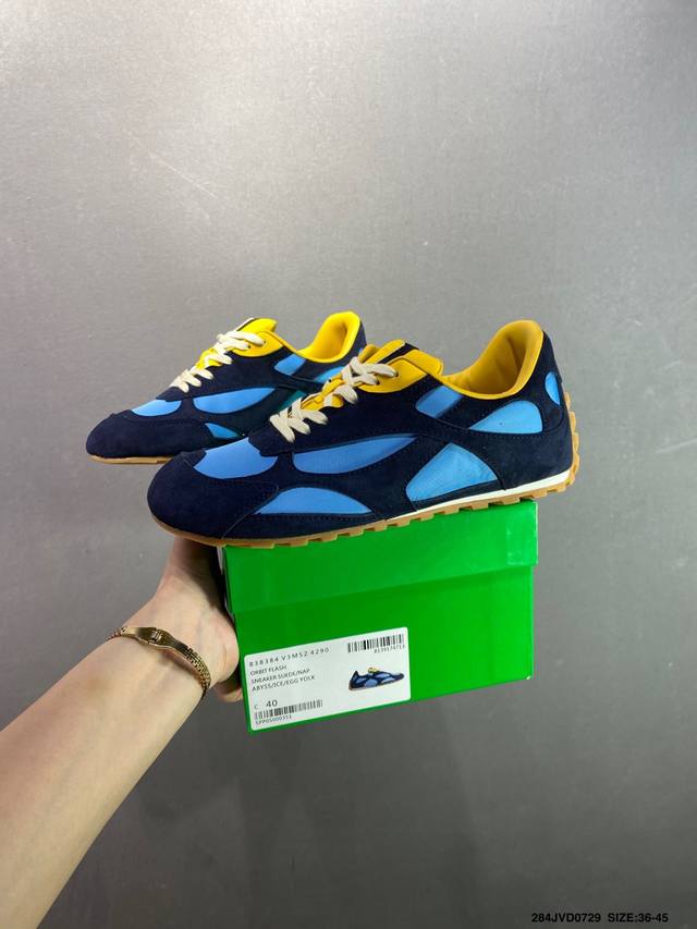 Company-grade Italian luxury brand - Bottega Veneta - Orbit Flash Low Sneakers, Track Nylon Series Lace-up Low-top German Training Style Thin-soled Comfortable Casual Sports Shoes "Suede Sea Salt White Brown Raw Rubber" 838384V3Ms29321 DDD Sizes: 35-40 DDD Code: 284Jvd0729 DDD