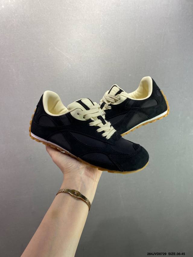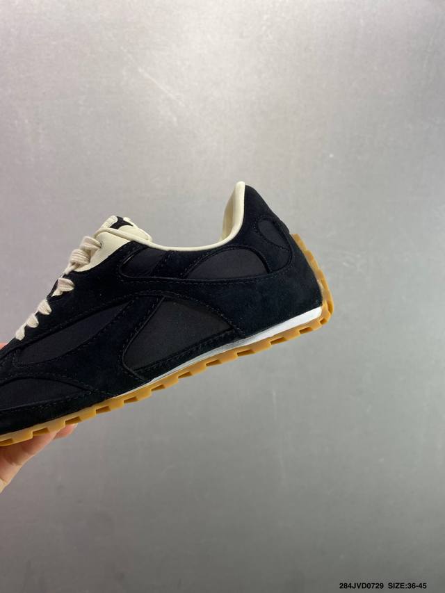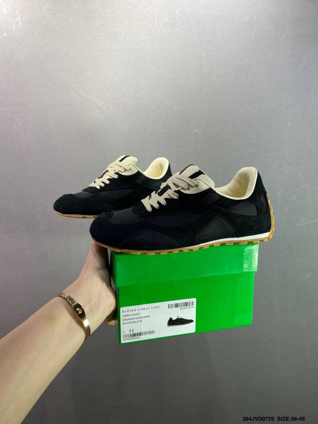 Company-grade Italian luxury brand - Bottega Veneta - Orbit Flash Low Sneakers, Track Nylon Series Lace-up Low-top German Training Style Thin-soled Comfortable Casual Sports Shoes "Suede Sea Salt White Brown Raw Rubber" 838384V3Ms29321 DDD Sizes: 35-40 DDD Code: 284Jvd0729 DDD