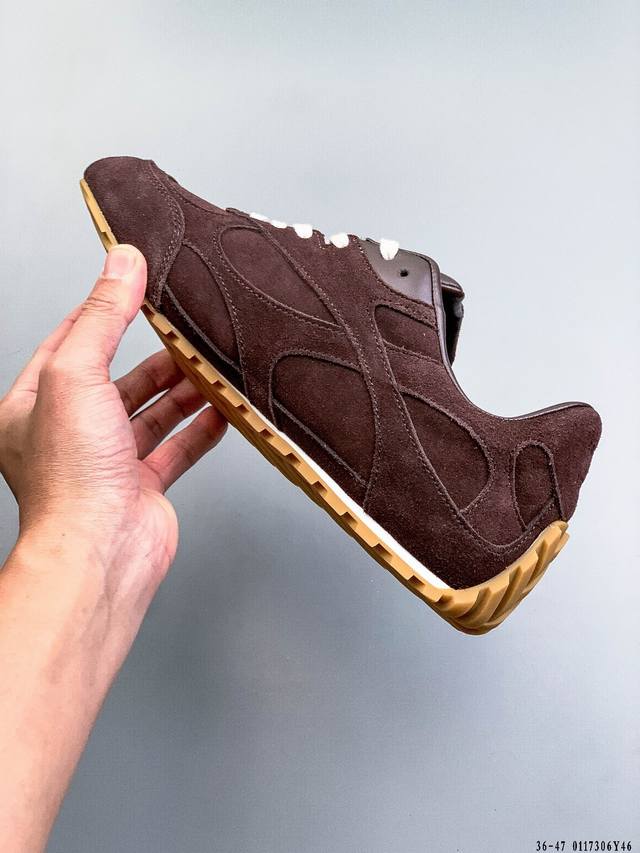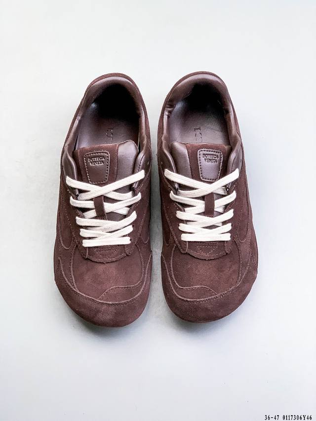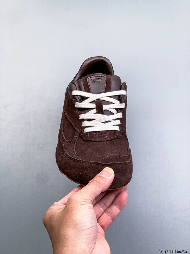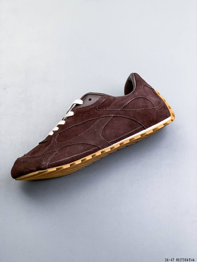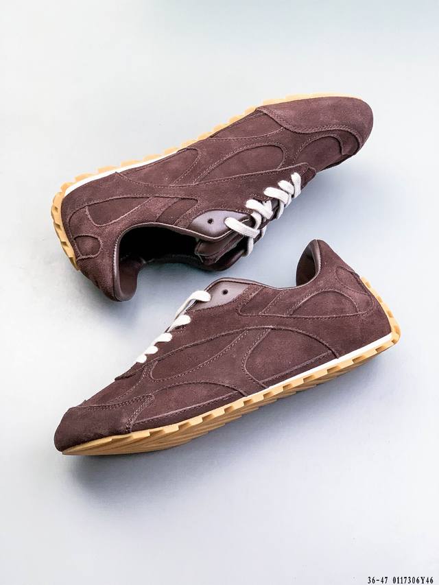 Company-grade Italian luxury brand - Bottega Veneta - Orbit Flash Low Sneakers, Track Nylon Series Lace-up Low-top German Training Style Thin-soled Comfortable Casual Sports Shoes "Suede Sea Salt White Brown Raw Rubber" 838384V3Ms29321 DDD 0117306Y46 DDD
