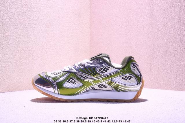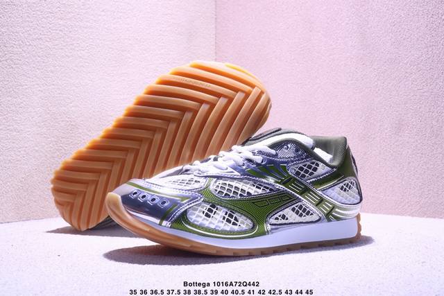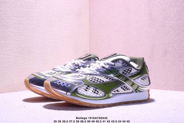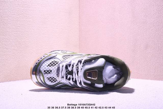 Italian luxury brand - Bottega Veneta - Orbit Lace-Up Runner Bv Bottega Veneta fashionable casual dad shoes, as seen on Wang Yibo. Features lightweight technical mesh fabric with geometric pattern design and a rubber outsole. A true "King of Shoes" series. Provides a significant height increase while still making legs look slimmer. Very nice. Durable and stylish, matching the original design. High-quality version with a two-tone TPU outsole and original packaging. Item number: 755915 V2X40 6151. Size: As shown in the picture. Xm1016Q442.