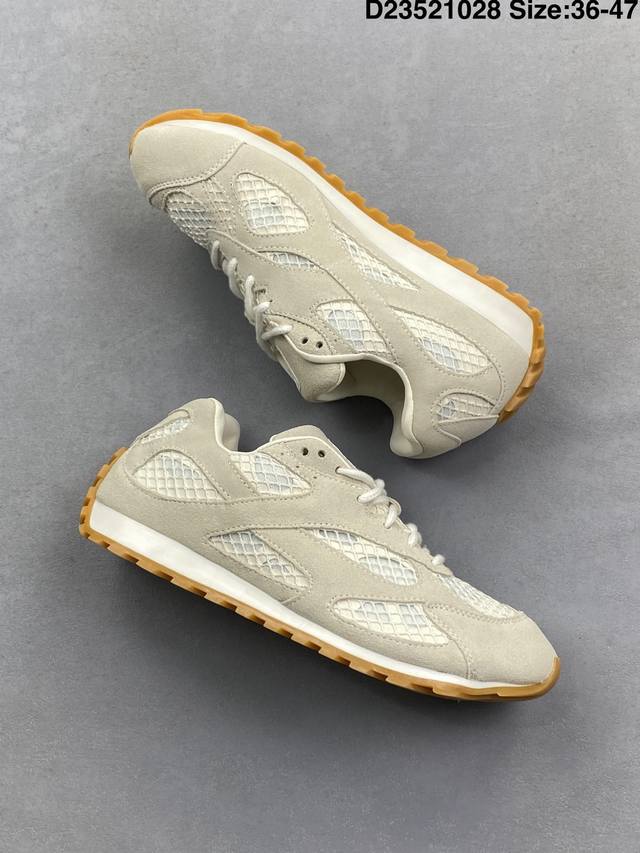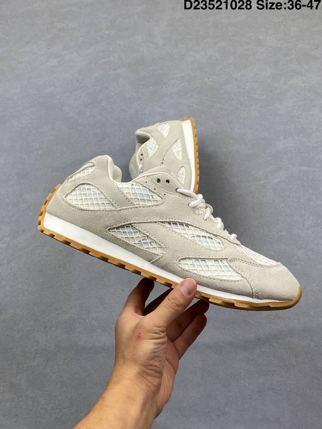 This company-grade men's and women's shoe features a lightweight, high-tech diamond-patterned mesh upper, an embedded breathable mesh upper with thickened PU cushioning latex insoles, and an external anti-deformation, wear-resistant TPU rubber outsole. It pays homage to the brand's famous Intrecciato pattern! Italian luxury brand Bottega Veneta's Orbit Lace-Up Low Sneakers, a lace-up, low-top, breathable, comfortable casual sneaker with a "beige rubber sole," model 796481V4Je19031. Sizes: 35-45. Code: D23521028. Bottega Veneta releases the new Orbit sneaker. Inspired by the silhouette of 90s sneakers, this shoe features a mesh texture and a cross-overlay of different materials on the upper, undoubtedly paying tribute to the brand's famous Intrecciato pattern. Furthermore, the sole design is slender and elegant, extending to the back of the heel, cleverly combining sporty elements with fashion inspiration. Available in silver-white, black, and silver/parrot green colorways.