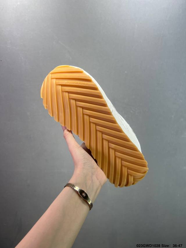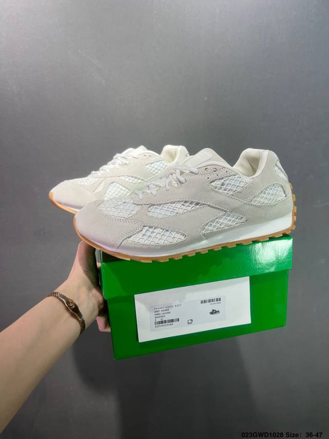 This is a factory-grade men's and women's shoe developed using the original last and paper version. It features a lightweight, technologically advanced diamond-patterned mesh upper, an embedded breathable mesh upper with thickened PU cushioning latex insole, and an external anti-deformation, wear-resistant TPU rubber outsole. It pays homage to the brand's famous Intrecciato pattern! Italian luxury brand Bottega Veneta's Orbit Lace-Up Low Sneakers, a lace-up, low-top, breathable, comfortable casual sneaker with a "beige rubber sole," model 796481V4Je19031. Sizes: 35-45. Code: 023Gwd1028. Bottega Veneta releases the new Orbit sneaker. Inspired by the silhouette of 90s sneakers, this shoe features a mesh texture and a cross-overlay of different materials on the upper, undoubtedly paying tribute to the brand's famous Intrecciato pattern. Furthermore, the sole design is slender and elegant, extending to the back of the heel, cleverly combining sporty elements with fashion inspiration. Available in silver-white, black, and silver/parrot green colorways.