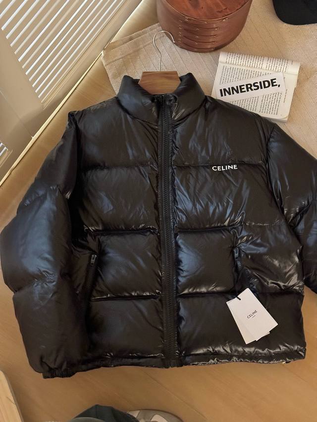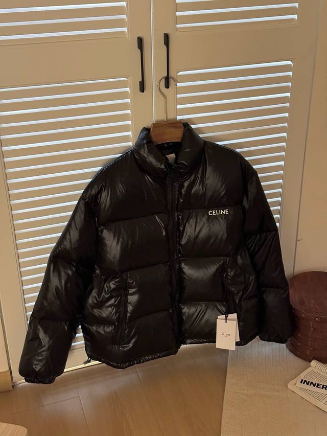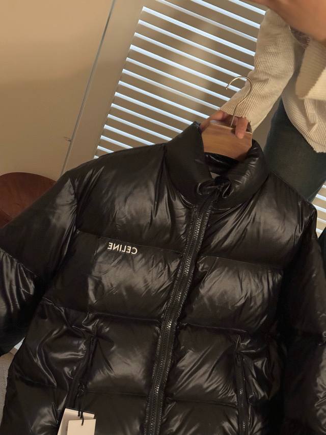 Authentic Export Version: Celine Black Fw22 Solid Color Stand Collar Puffer Jacket, Long Sleeve Zipper Loose Down Jacket. This winter's must-have! Cold-resistant: No problem at -20 to -30 degrees Celsius. Long size: 42, 44, 46, 48, 50, 52. Short size: 42, 44, 46, 48, 50, 52. Four months of development just to give you the best. Seemingly simple, but extremely difficult to develop. Fabric, custom weaving, custom dyeing, accessories, hardware all require mold opening and customization, imported anti-down-leakage yarn, etc. In short: high cost! Regarding the fabric: This down jacket uses the most comfortable fabric I've encountered so far