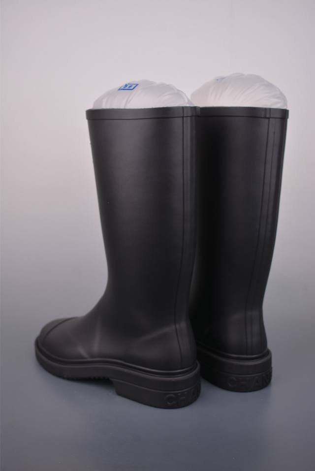 Chanel Double C Rain Boots Top-Tier Version Ddd Seamless Natural Raw Rubber Version High-End Quality Ddd A Luxurious Declaration for Rainy Days When Practical Rain Gear Meets Chanel DNA Ddd These black knee-high boots become the epitome of rainy day style Ddd The sturdy upper made of natural rubber Ddd Embossed with the iconic double C logo 2.5cm non-slip thick sole combines comfort and style Ddd Abandoning the dullness and rigidity of rain boots, they suit the femininity of French dresses and complement the casualness of denim items. As the rain falls, Chanel elegance remains constant, every step a luxurious focal point on the street. Ddd Official Product Number: D0508L1111 Ddd Sizes: 36 37 38 39 40 DDD