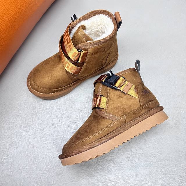 Children's Autumn/Winter New Arrival - Wang Yibo's Same Style Buckle Boys' Shoes - Comfortable Casual Solid Color Flat Adjustable Drawstring Quick Buckle Fashion Ankle Boots - Eva Foaming Anti-slip Shock Absorbing Ultra-light Sole DDD