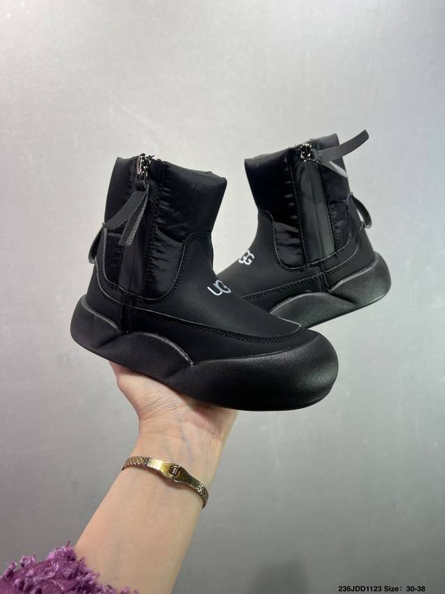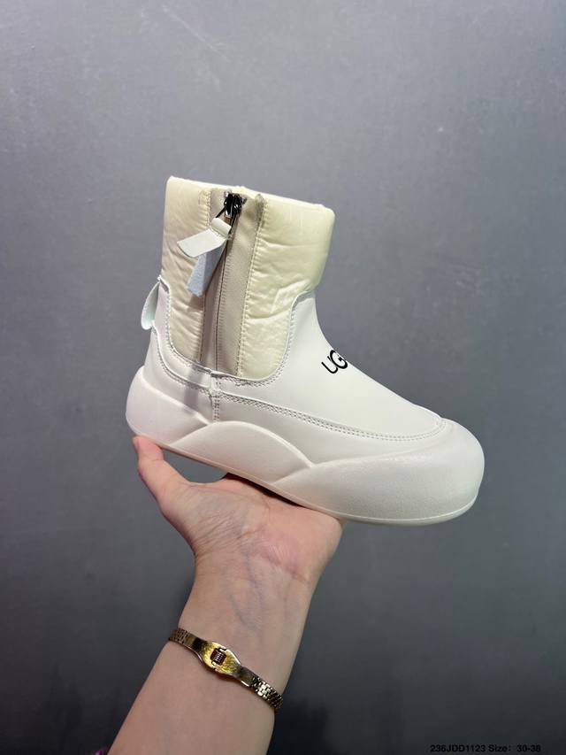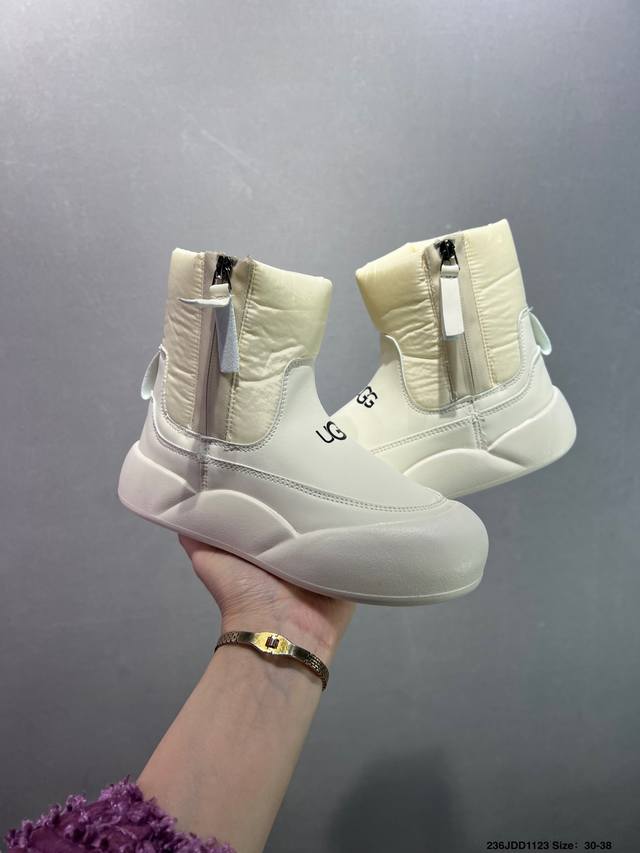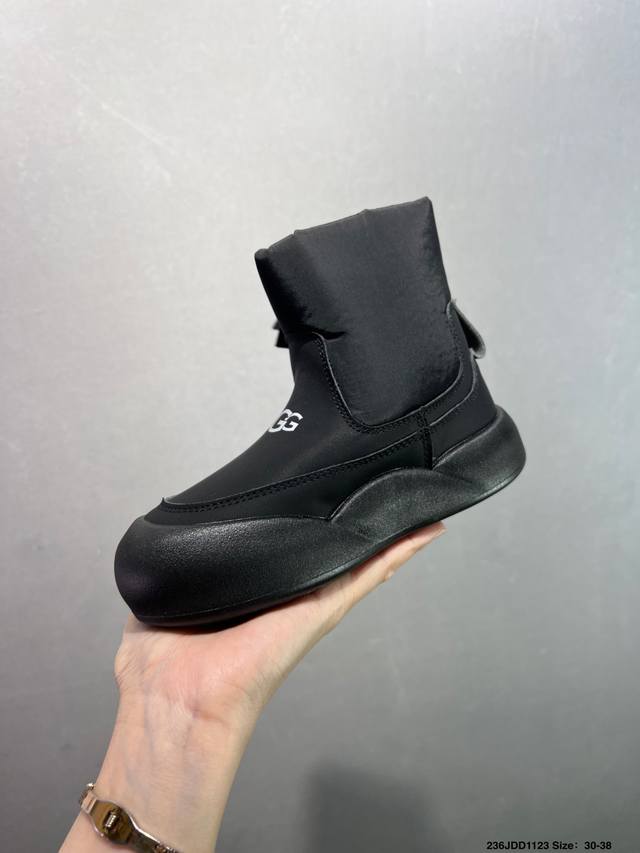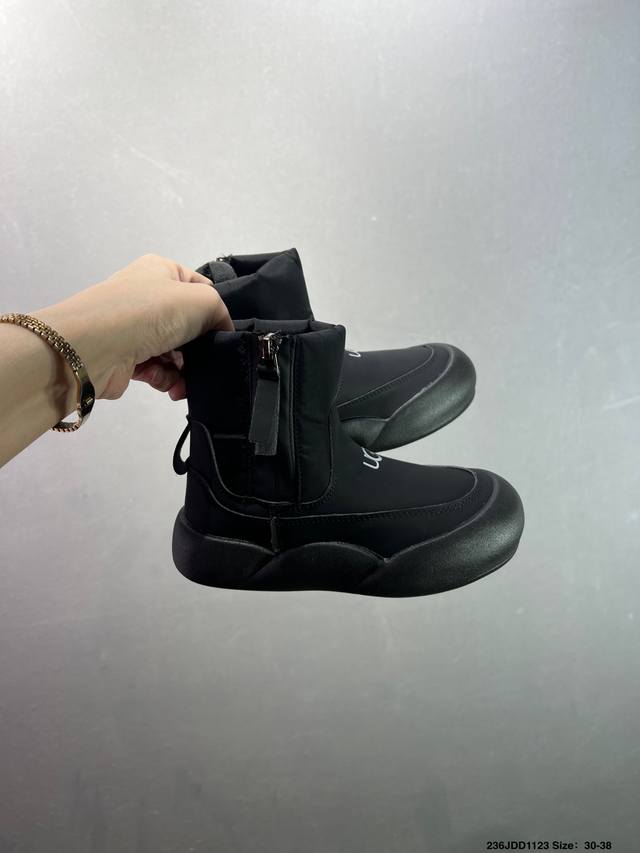 Children's Ugg Snow Boots, High-Top, Stylish and Comfortable Casual Shoes for Kids. These playful and cute high-top snow boots are from the American luxury brand Ugg. They feature a flat, warm, and furry design for winter. Official packaging and inspection label. Made with original factory-made, stain-resistant, waterproof leather, non-slip, wear-resistant, and lightweight outsole for excellent warmth, perfect for cold weather. The 1.1L Longfeng Treadlite By Ugg lightweight outsole provides a unique and comfortable experience. Sizes: 26-37. Code: Qwns1121Ljl.