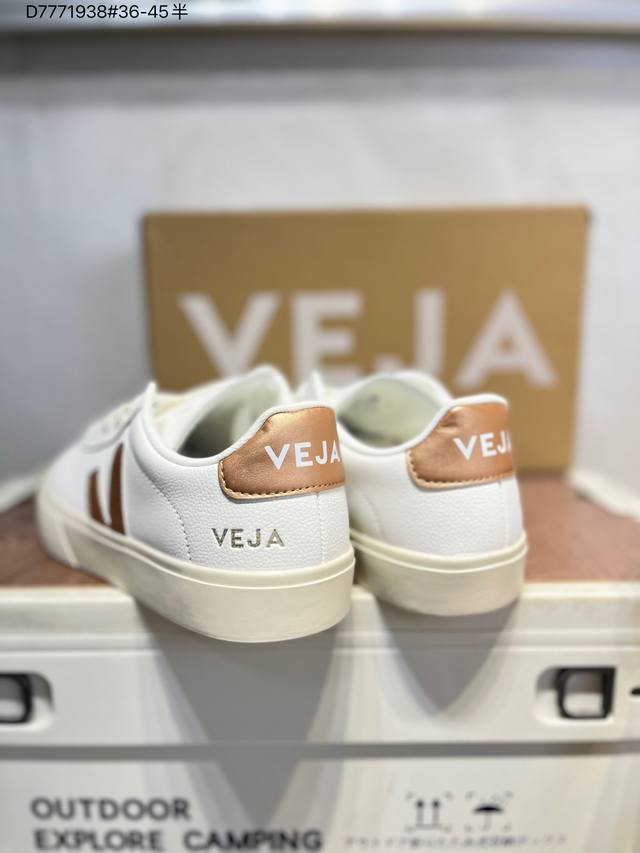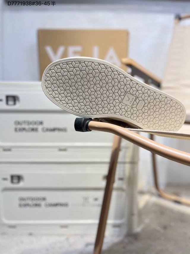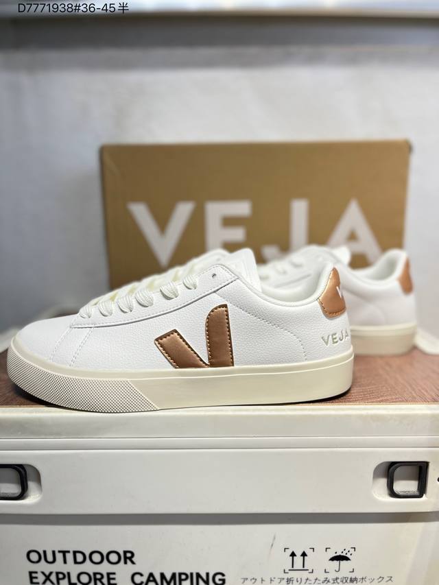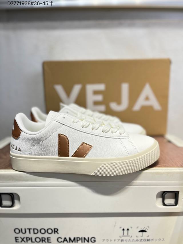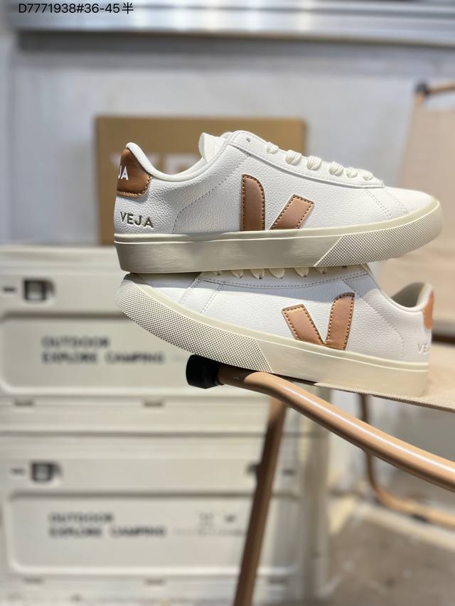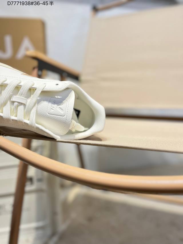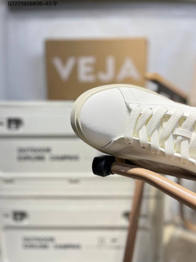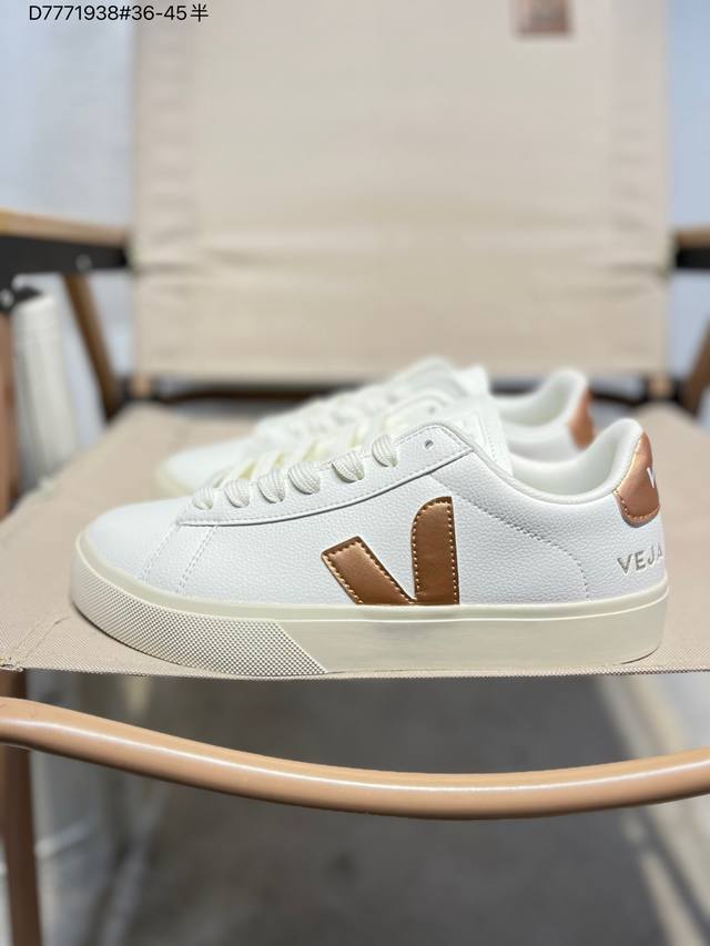 Minimalist everyday style, trendy white sneakers, Veja Campo Chrome Free Low Sneakers, a classic, stylish, versatile, thin-soled, casual, sporty white sneaker from the French national sneaker brand Veja. This Veja Campo Chromefree leather sneaker features a round toe design for comfortable wear. It has a black Veja brand logo on the side, a lace-up design at the front, and an overall black and white contrast color scheme, classic and stylish, suitable for everyday wear. The rubber flat sole provides comfortable movement. (Ea Cp0502818 D7771938# 36-45)