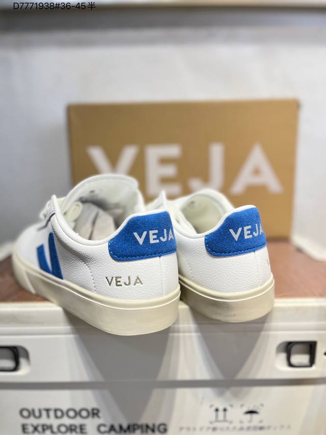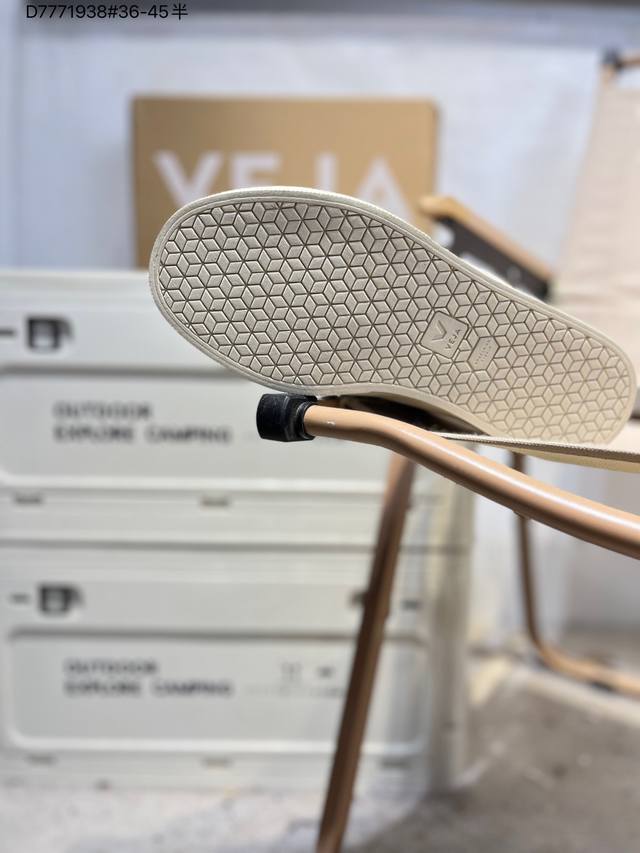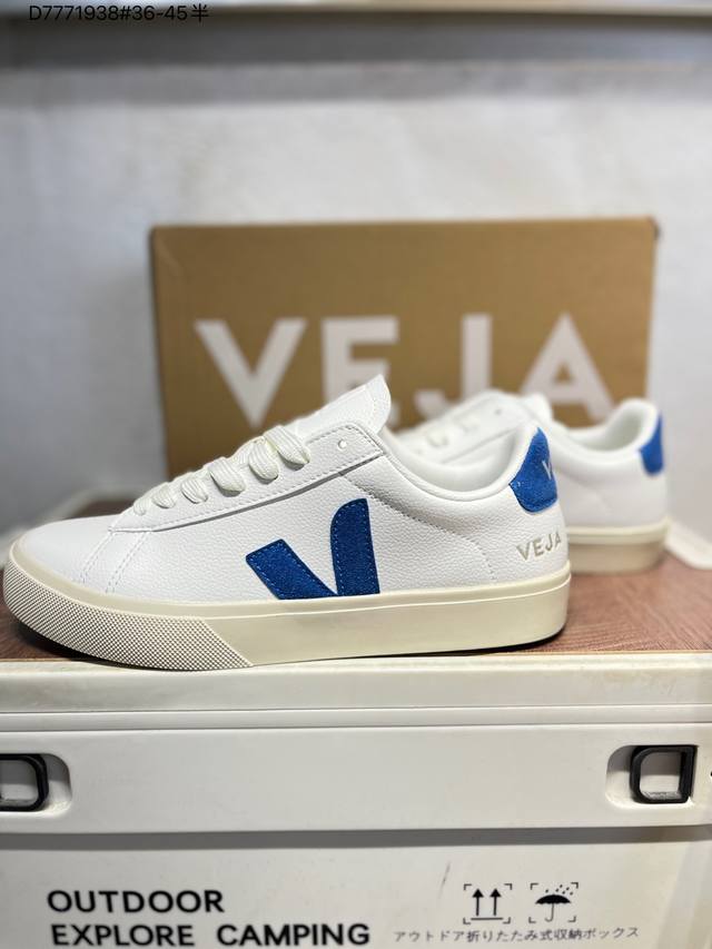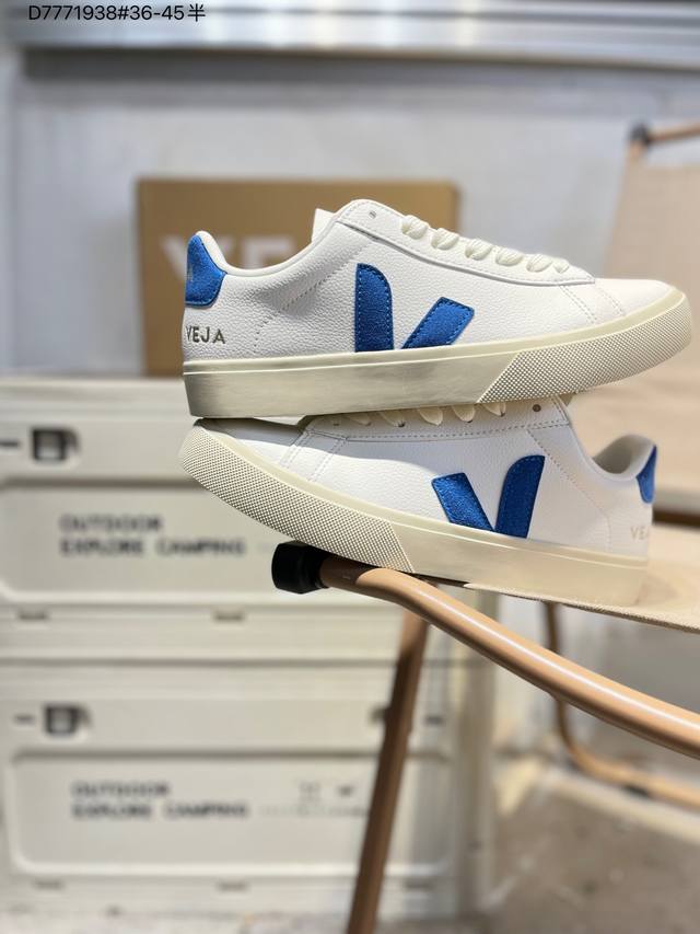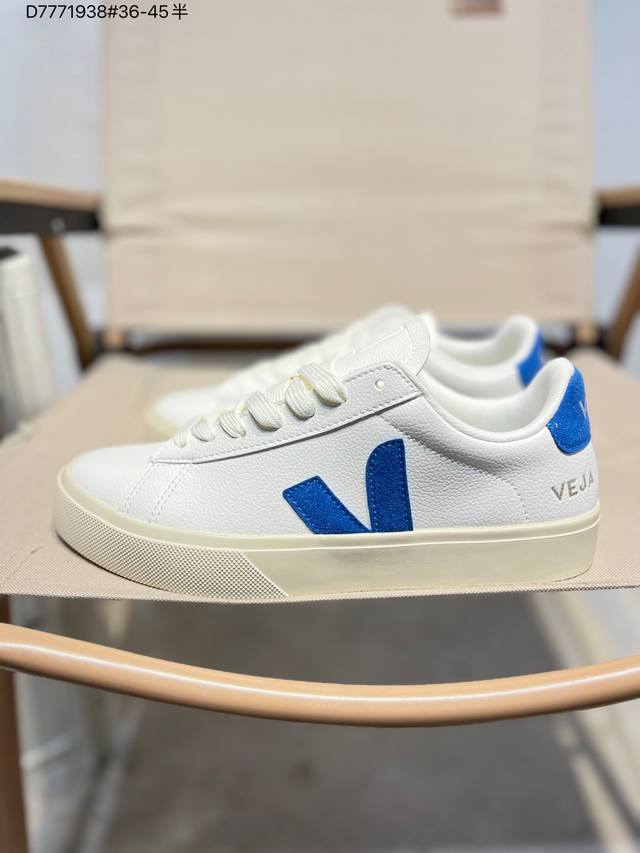 Minimalist everyday style, trendy white sneakers, Veja Campo Chrome Free Low Sneakers, a classic, stylish, versatile, thin-soled, casual, sporty white sneaker from the French national sneaker brand Veja. This Veja Campo Chromefree leather sneaker features a round toe design for comfortable wear. It has a black Veja brand logo on the side, a front lace-up design, and an overall black and white contrast color scheme, classic and stylish, suitable for everyday wear. The rubber flat sole provides comfortable movement. (Ea Cp0502818 D7771938# 36-45)