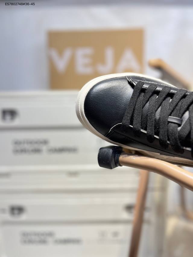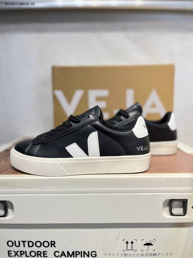 Special Offer: Minimalist Everyday Style Trendy White Sneakers, Veja Campo Chrome Free Low Sneakers, a classic, stylish, versatile, thin-soled, casual, sporty white sneaker from the French national sneaker brand Veja. This Veja Campo Chromefree leather sneaker features a round toe design for comfortable wear. It has a black Veja brand logo on the side, a front lace-up design, and an overall black and white contrast color scheme, classic and stylish, suitable for everyday wear. The rubber flat sole provides comfortable movement. (Cp052485B Es7802748#36-45)