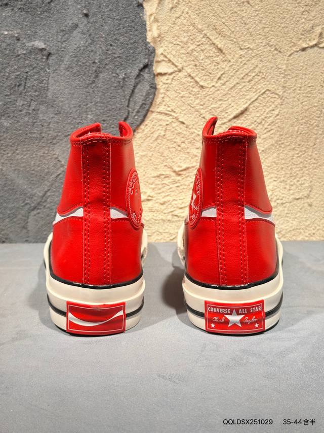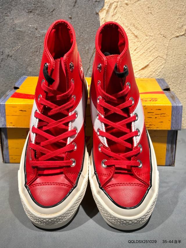 Converse once again collaborates with Coca-Cola to launch a collaborative series, incorporating cola elements into the iconic design. Featuring a premium red leather upper with crisp white stripes, it recreates the classic look of a cola can, while the retro shoe label adds a touch of personality, giving the classic a fresh new charm.