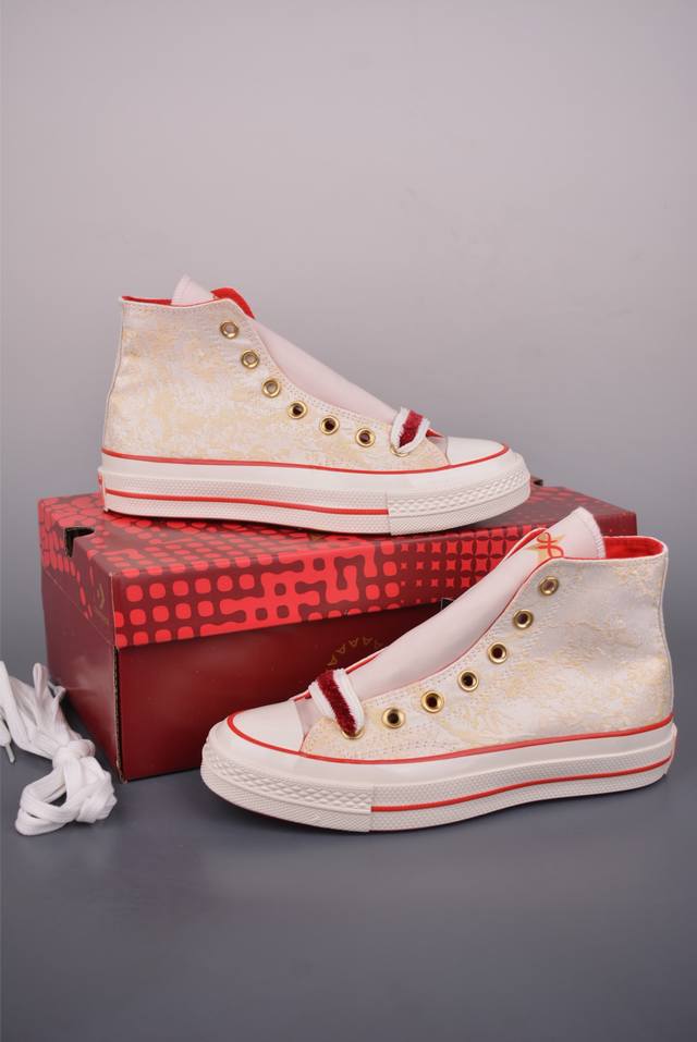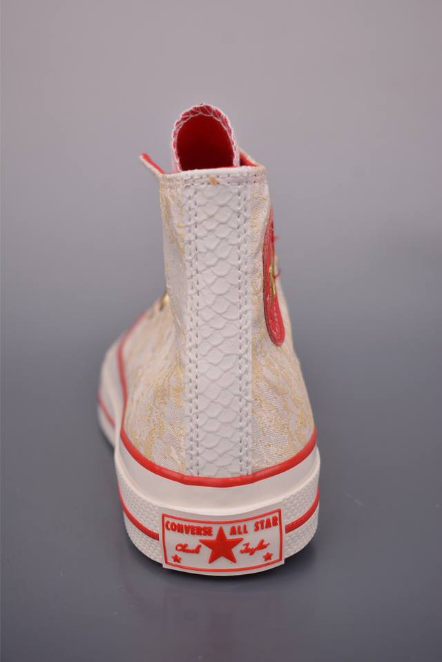 Converse 1970S Lucky Year Limited Edition Snake Shoes. These shoes are truly full of detail! Perfect for both New Year's and everyday wear, they look amazing! The 1970S is a classic! The gold snakeskin texture is incredibly luxurious, and the red stars add a festive touch. Both stylish and practical! Product Code: A13348C Sizes: 35-44, 36.5, 37.5, 39.5, 41.5, 42.5