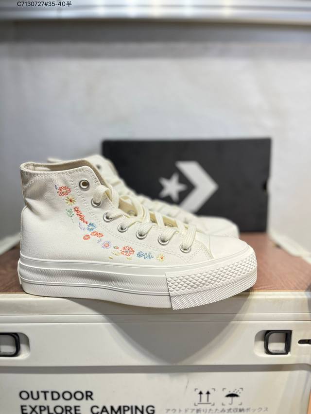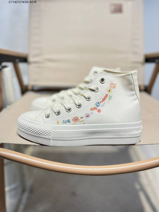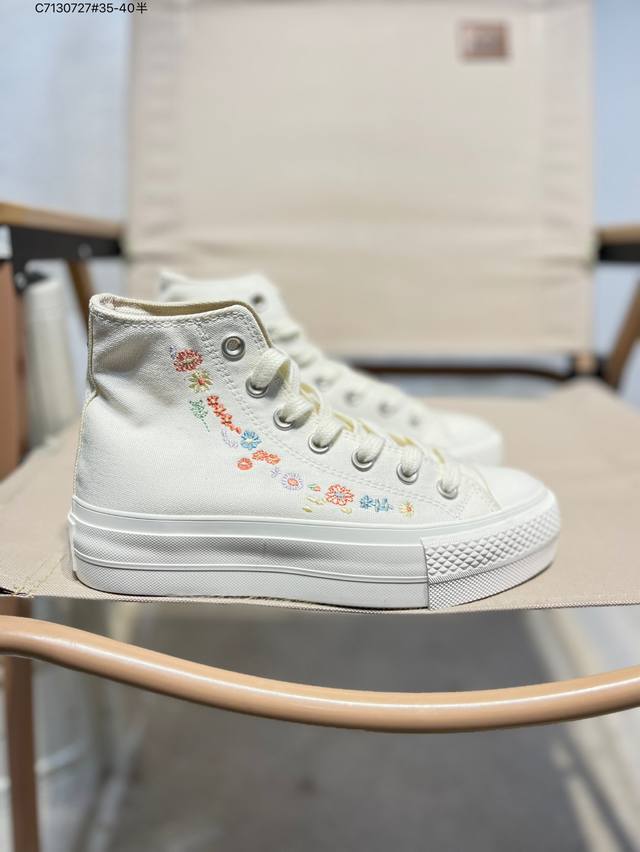 Converse All Star Lift platform shoes with embroidered flowers, spring is in full bloom. Warm and fufu, these Converse platform shoes are so cool. Embroidering spring on the shoes is really awesome. 3cm taller, lightweight platform shoes. A01586C C7 727#35-40 half