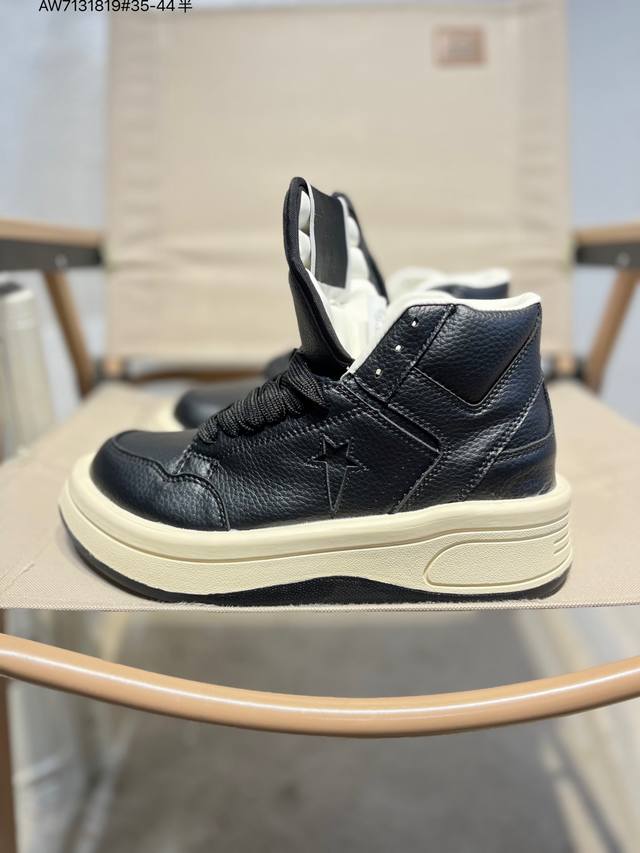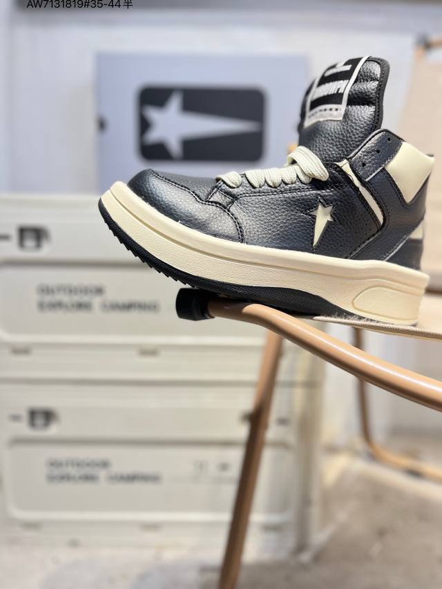 A fusion of dark punk rock aesthetics, inspired by the classic 80s basketball shoe Weapon, a major collaboration between Rick Owens' sub-brand Drkshdw and Converse Turbodrk Chuck 70 Mid Turbowpn "Sail Cloud Cream" modern platform series low-top genuine leather casual sports sneakers 172343C Aw7131819 #35-44 half