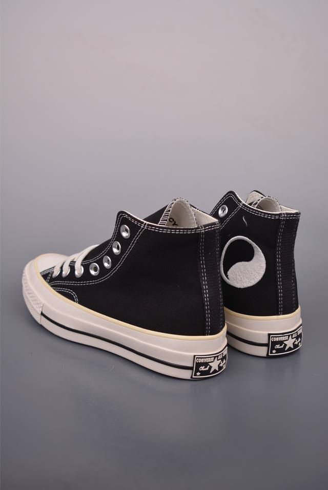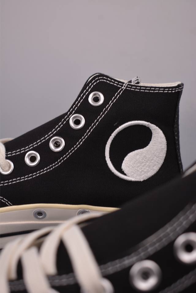 Converse X Our Legacy Yin-Yang Collaboration - Official New Release. Converse, in collaboration with Our Legacy Workshop, draws inspiration from retro styles to reimagine a classic design. With meticulous attention to detail, retro elements are cleverly blended with a refined silhouette. The thickened upper and redesigned toe box, along with the original canvas material and embroidered Yin-Yang logo, showcase understated craftsmanship. It retains the classic DNA while injecting new ideas. The shoe features a hidden Chuck patch on the lining, an embroidered Yin-Yang logo on the outer side, and collaborative insoles and laces, all highlighting the collaboration in its details.