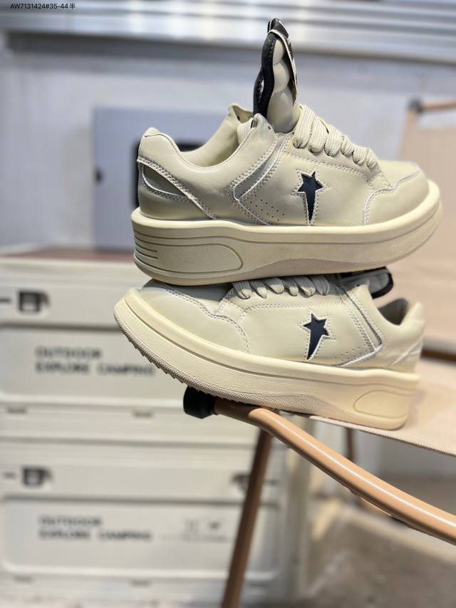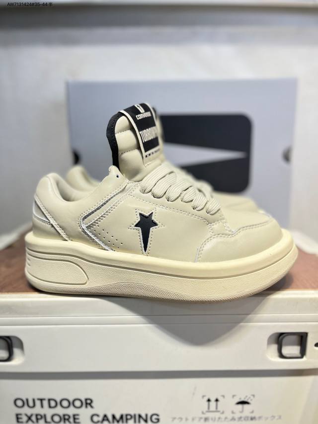 Guangdong-made Converse high-top sneakers Ddd. A fusion of dark punk rock aesthetics, inspired by the classic 80s basketball shoe Weapon, this collaboration features Rick Owens' sub-brand Drkshdw X Converse Turbodrk Chuck 70 Mid Turbowpn "Sail Cloud Cream" modern platform low-top genuine leather casual sports sneakers A12062C Aw7131424 #35-44 half DDD