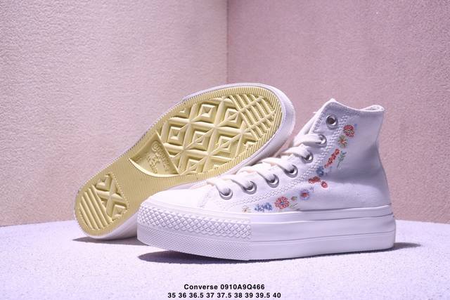 Vulcanized Converse All Star Lift thick-soled embroidered flowers, spring is in full bloom. These warm and comfortable Converse thick-soled height-increasing shoes are amazing. They add 3cm to your height and are lightweight. Sizes: 35-40, 36.5, 37.5, 39.5. Xm0910Q466.