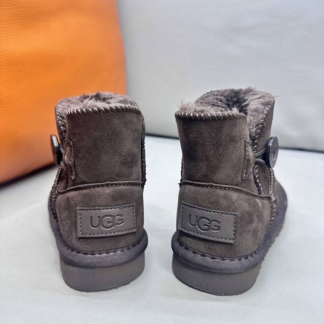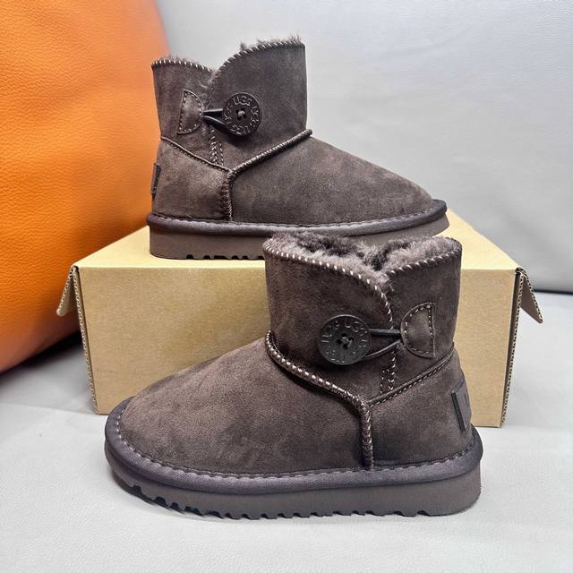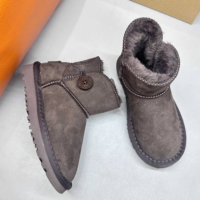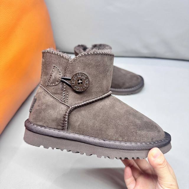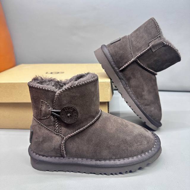 Correct Version Ugg Peach Wood Buckle Children's Parent-Child Snow Boots DDD Size: 21-37 DDD Five Colors: Chestnut, Black, Dusk Pink, Gray, Chiffon DDD Wool-proof lining, warm and environmentally friendly DDD Cowhide upper, warm and comfortable DDD EVA outsole, same as official website, non-slip and wear-resistant... DDD Item Number: 1016422 DDD