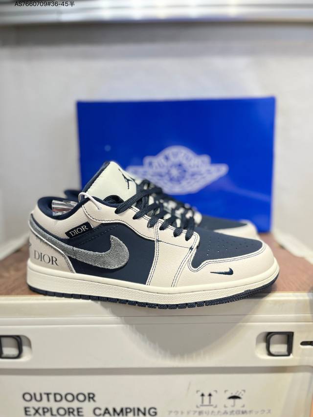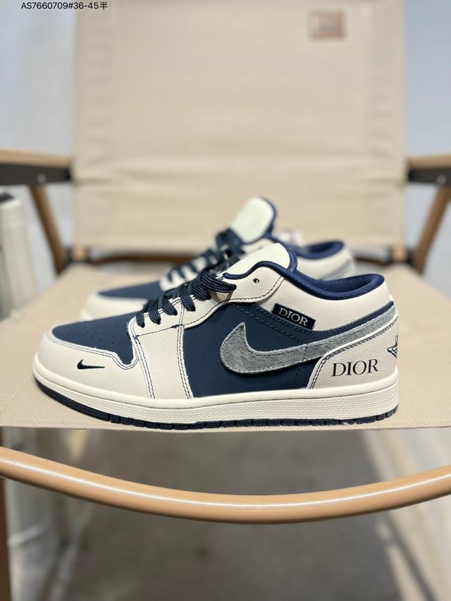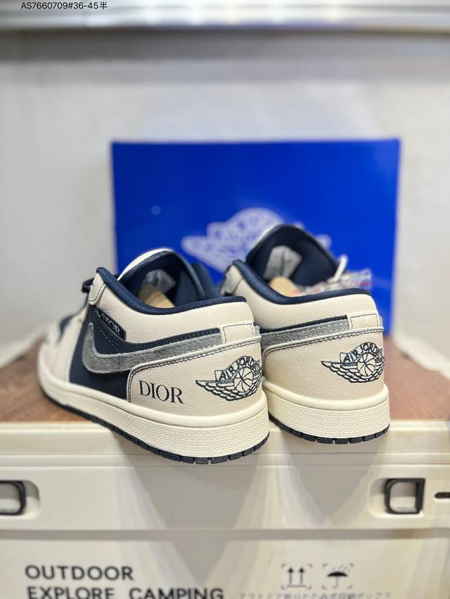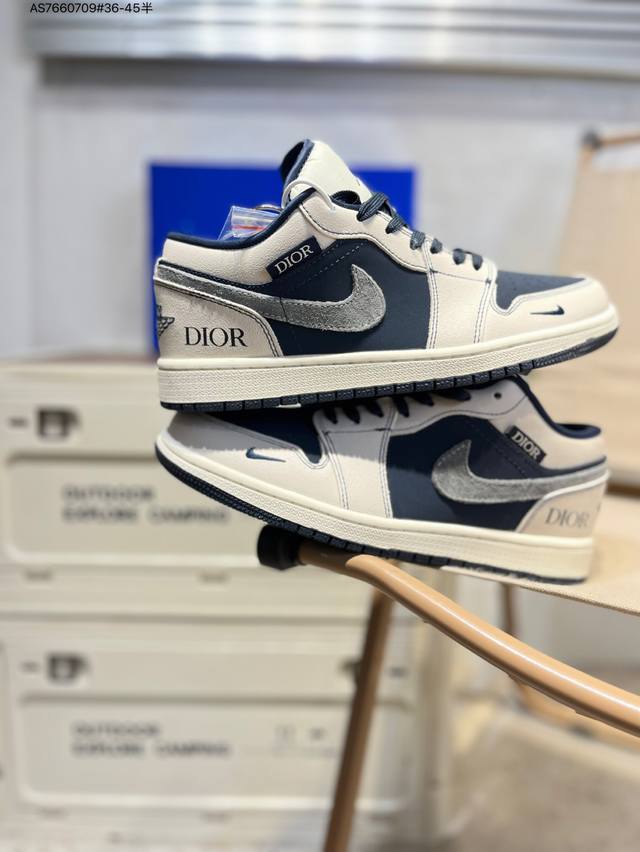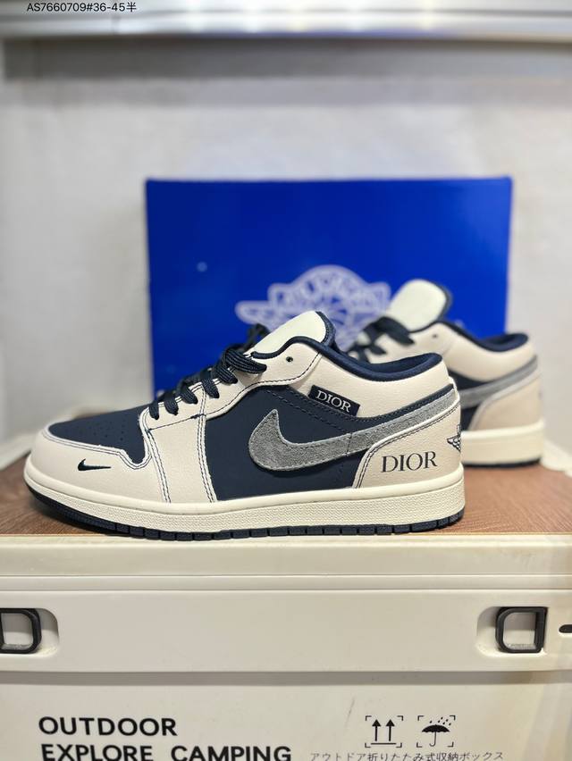 Company-grade top-layer leather Dior x Jordan Air Jordan 1 Low Aj1 low-top series basketball shoes official synchronized color original product