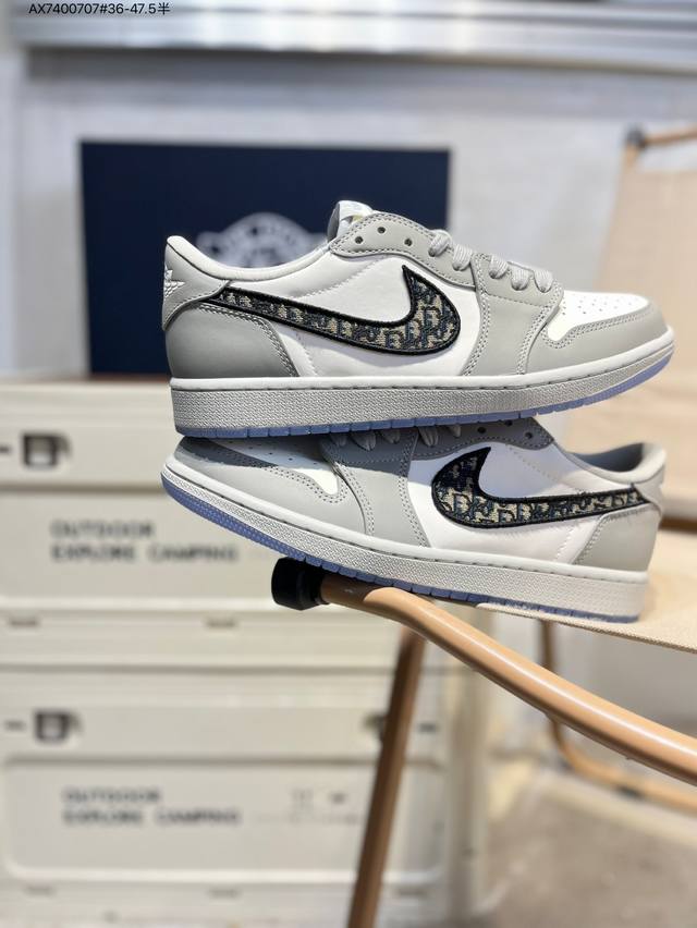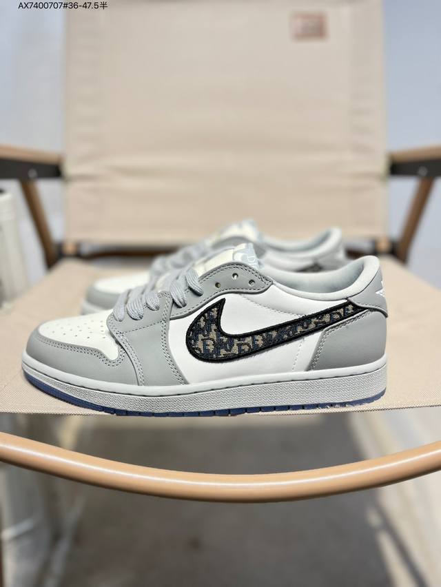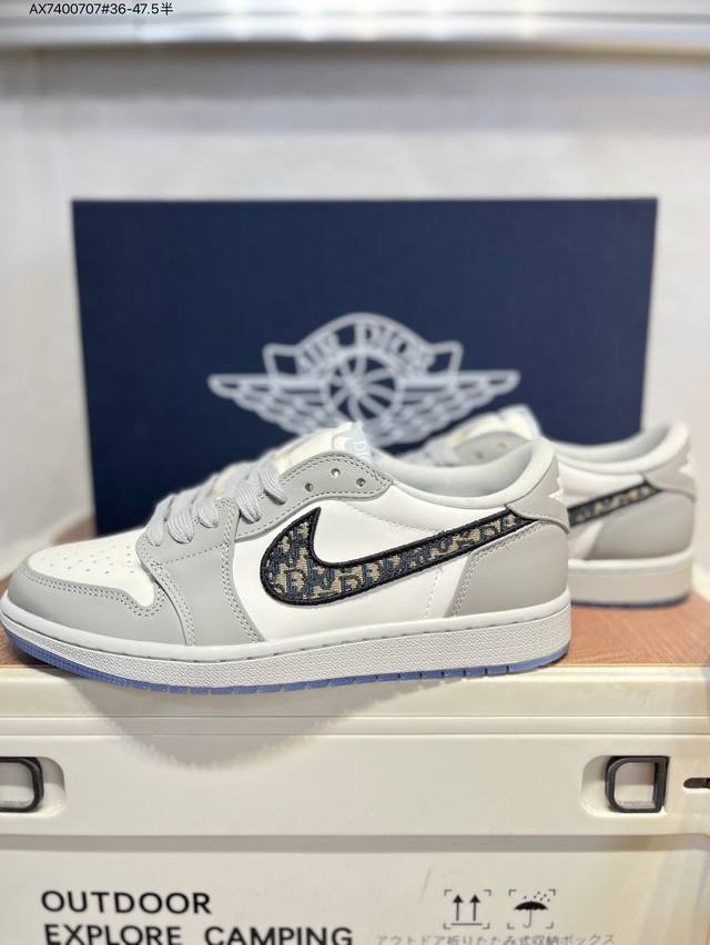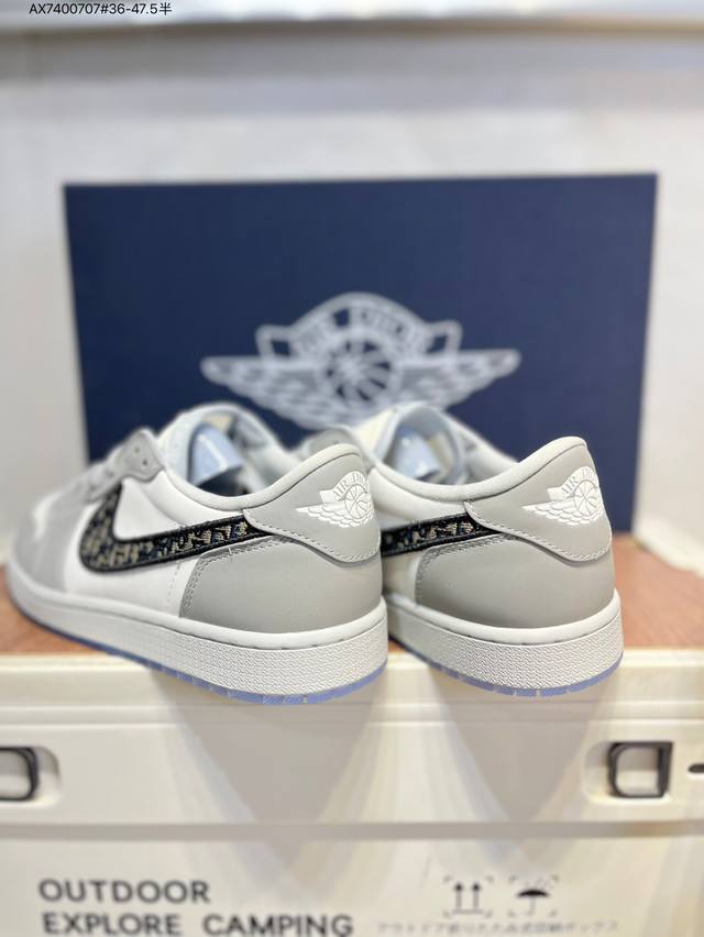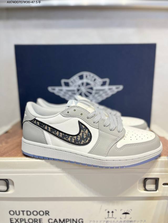 Company-level first-layer leather Dior x Jordan Air Jordan 1 Low Aj1 low-top series basketball shoes official synchronized color original product