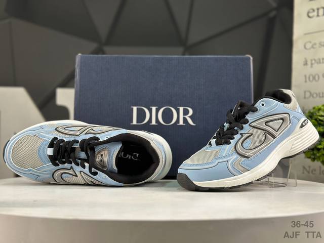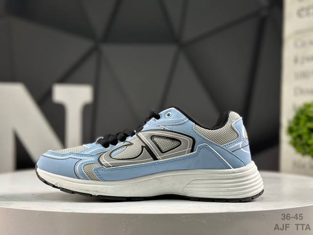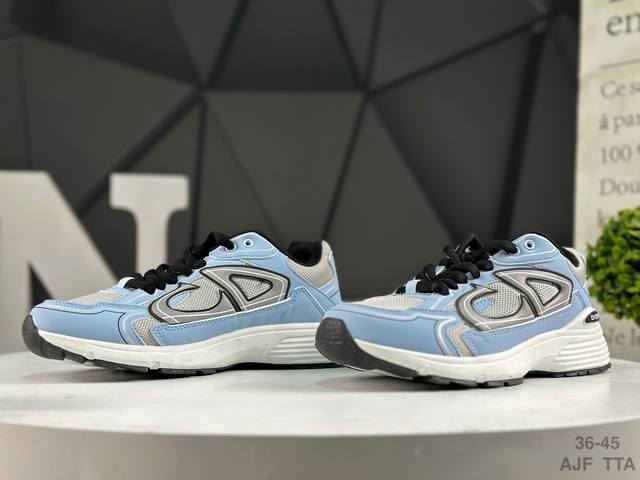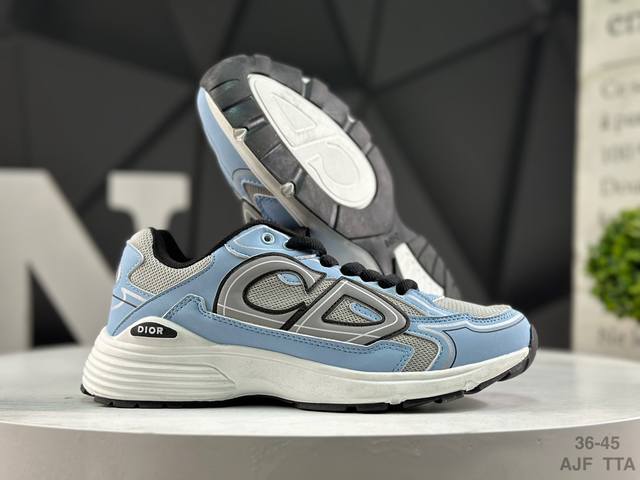 Dior B30 Mesh Chunky Lace-up Casual Low-Top Sneakers, Unisex Dad Shoes. This B30 Countdown low-top sneaker has become a distinctive classic from Dior, stylish and sporty. Crafted from charcoal grey mesh fabric, it features black, blue, and Dior grey technical materials, accented with a reflective Cd30 logo for added style and aesthetic appeal. The tongue and heel are adorned with silver Dior B30 and Cd30 logos. The lightweight textured rubber sole is decorated with numerous distinctive details, and internal elastic straps ensure ideal comfort. Pair with a variety of casual items for a sophisticated look. Sizes: As shown in the picture. Ajf Tta DDD