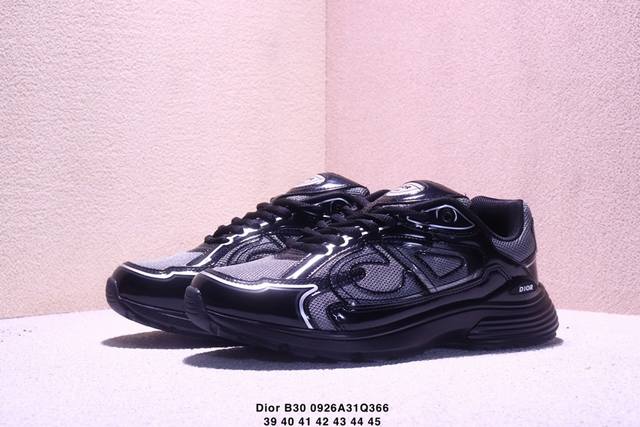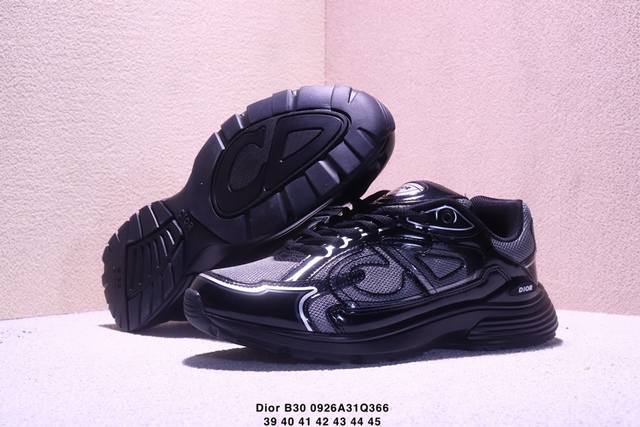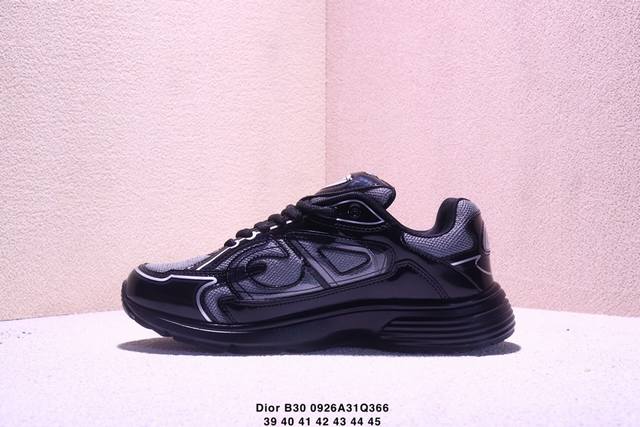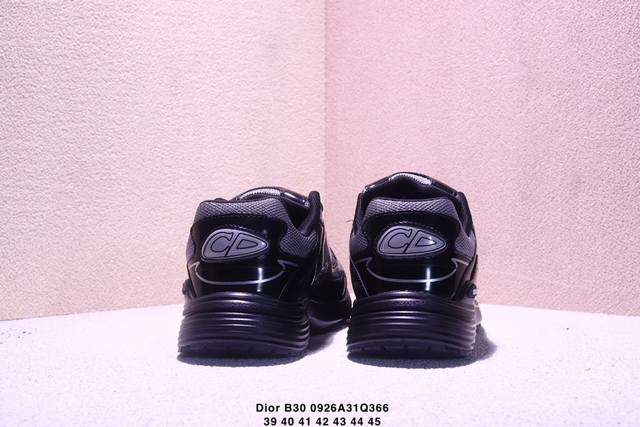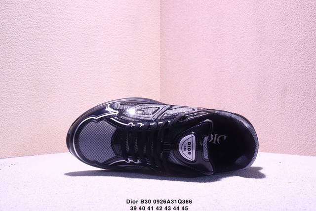 Dior B30 mesh low-top sneakers. Crafted from black mesh, white and black technical fabric, this style features a reflective "Cd30" graphic logo. The lightweight, sculpted rubber sole with signature accents elevates the look, while stretch details create an ideal fit and complement any casual look for a stylish, modern, sporty vibe. Size: As shown. Xm0926Q366