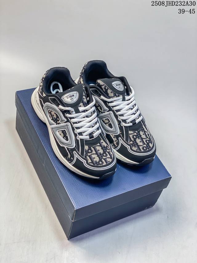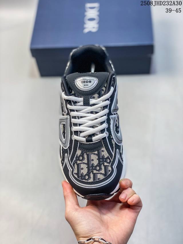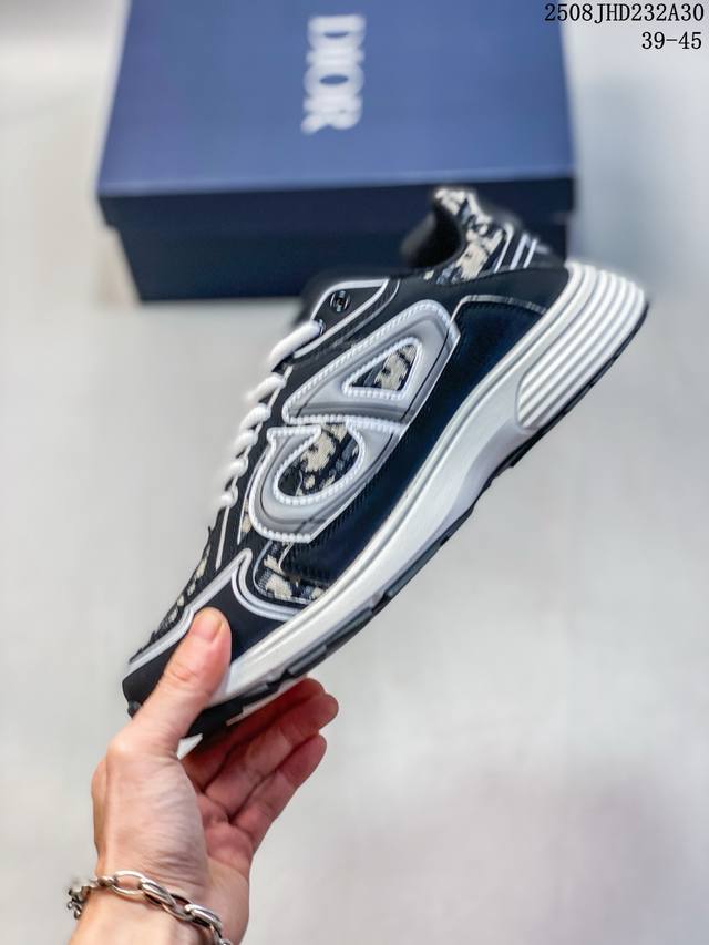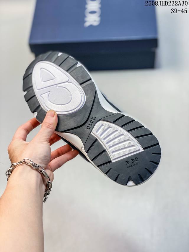Dior B30 Mesh Platform Lace-Up Casual Low-Top Sneakers, a unisex pair. These B30 Countdown low-top sneakers have become a distinctive Dior classic, offering a stylish and sporty look. Crafted from anthracite mesh with accents of black, blue, and Dior Grey technical fabrics, they are enhanced with reflective CD30 logos for a stylish and aesthetically pleasing look. Silver-tone Dior B30 and CD30 logos are embellished on the tongue and heel. The lightweight, textured-effect rubber sole is embellished with numerous distinctive details, and the internal elastic band provides ideal comfort. Pair with a variety of casual pieces for a sophisticated look. Size: As shown. Code: 08J hd232A30
