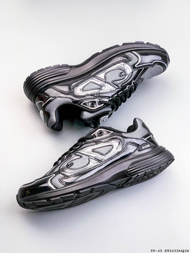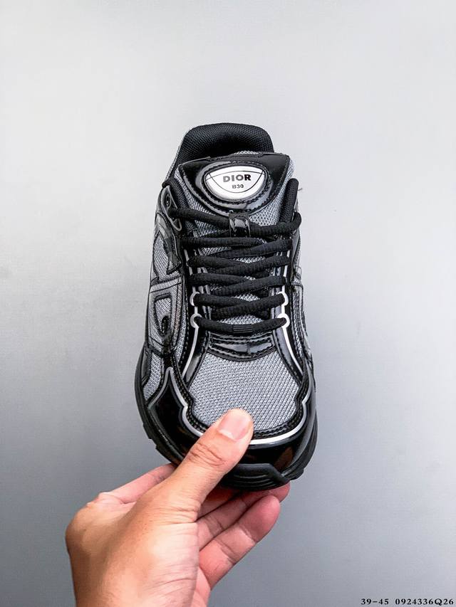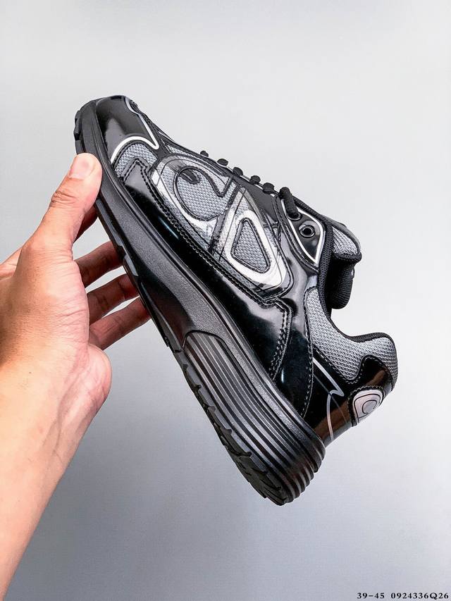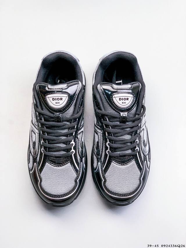 Dior B30 Retro-Inspired Breathable and Versatile Casual Shoes. The B30 features a blend of fine leather and mesh. The shoe's sides are prominently labeled with the initials Cd, representing Christian Dior. Numerous detailed lines enhance the shoe's overall look. A cream-colored EVA and rubber outsole creates a vintage feel.
